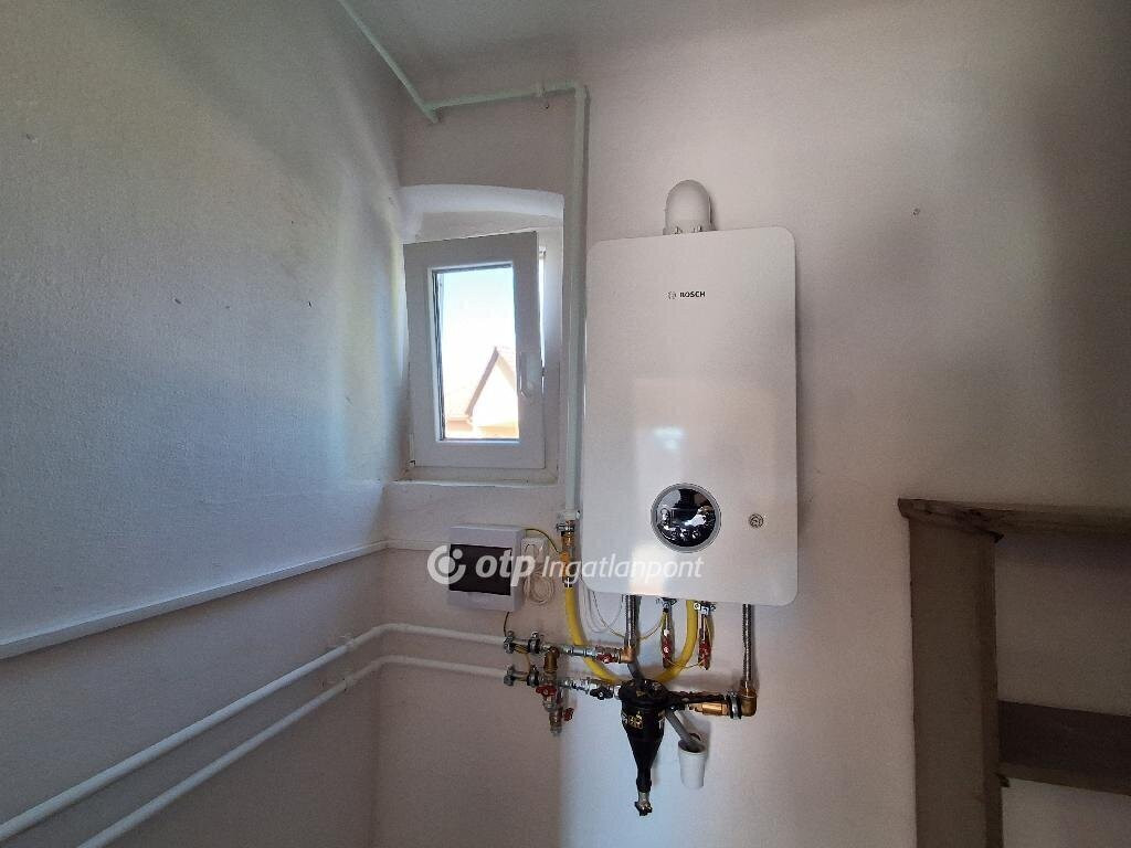 Enese kedvelt, központi részén eladó ez a 104 m2- es, 3 + 1 félszobás lakóház. A tégla építésű ingatlan korszerűsítését két éve elkezdte a tulajdonos. Ekkor új, műanyag külső nyílászárókat építettek be és a villamos hálózatot is teljesen felújították. A szobák szintén új, laminált lapos burkolatot kaptak. A gázkazánt is új berendezésre cserélték, ami még garanciális. Ez biztosítja a ház meleg víz ellátását és fűtését is, radiátoros hőleadással. A konyhai rész alatt található egy 48 m2 - es száraz, külső bejárattal rendelkező borospince. A ház mögött van egy jó állapotú garázs is.