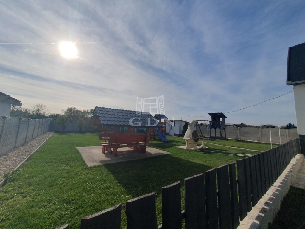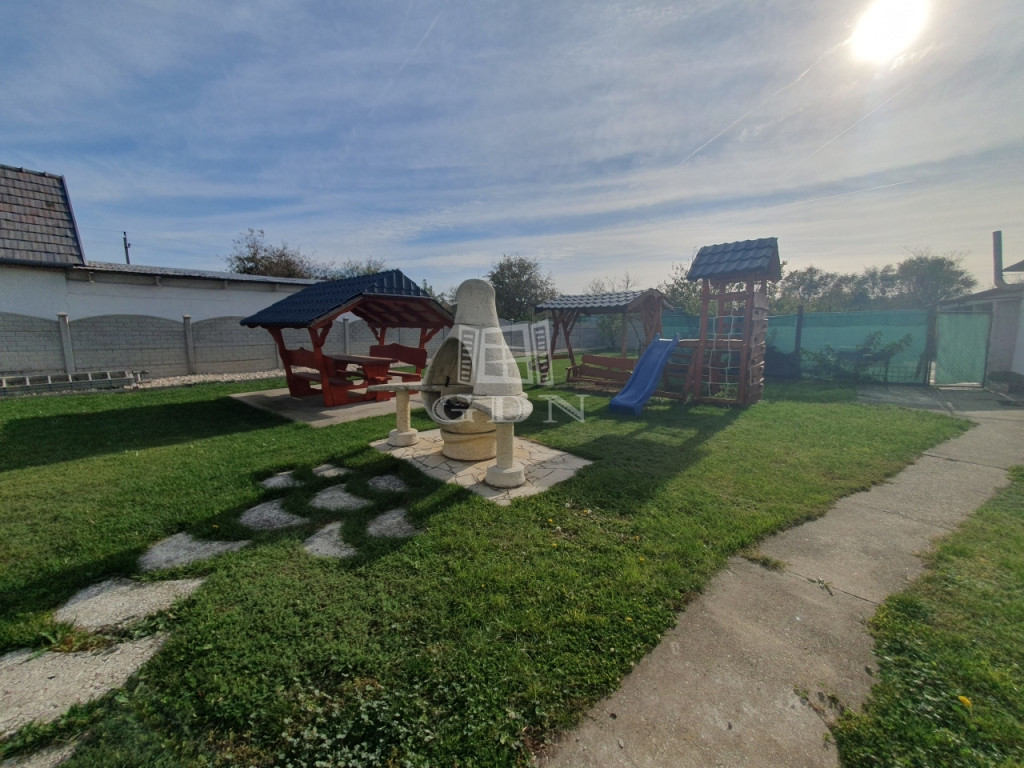 Az ingatlan riasztórendszerrel ellátott, a kert igényesen kialakított, az öntözést fúrt kút biztosítja. Itt kapott még helyet egy fedett kerti kiülő, szaletli és kerti sütögető is.