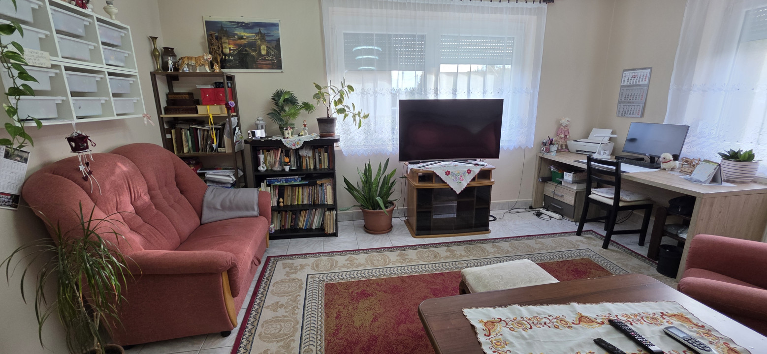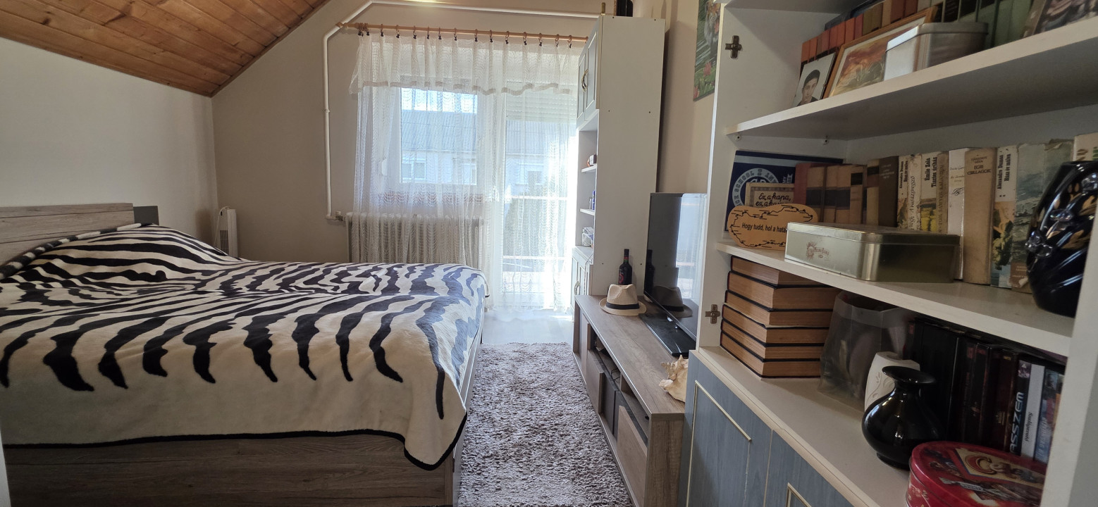 Tetőtérben: 3 szoba (13,2 nm, 10,5 nm, 10,5 nm), gardrób (5,7 nm), zuhanyzó (2,2 nm), WC (1,5 nm), közlekedő (9,7 nm) került kialakításra. Földszinten az étkezőből közelíthető meg a 32 nm-es terasz, tetőtérben 2 szoba erkélykapcsolatos. A ház alsó szintjét 2024-ben újították fel, amikor cserélték a víz és villanyvezetékeket, bevezették az éjszakai áramot a H tarifát és az ipari áramot is. ( 380 V ) Új beltéri ajtók kerültek beépítésre, megújult a fürdőszoba ahova épített zuhanyzó került beépítésre. Csatornahálózat 6-7 éve lett cserélve. Nyílászárói műanyagok, redőnnyel és szúnyoghálóval felszereltek. A ház kellemes hőérzetét 6 db hűtő-fűtő klíma, kombi cirkós gázkazán, vegyes tüzelésű kazán biztosítja. Meleg víz ellátását még egy villanybojler is segíti. A kőzetgyapottal szigetelt tető vasbetonfödémes, héjazata Bramac cseréppel fedett. A telken található egy 36 nm-es, kétállásos garázs, 16 nm-es filagória, szerszámtároló és egy fúrt kút szivattyúval. Kiépítésre került a kamerarendszer is. Kapu távirányítóval működő elektromos. Buszmegálló pár perc sétával elérhető.