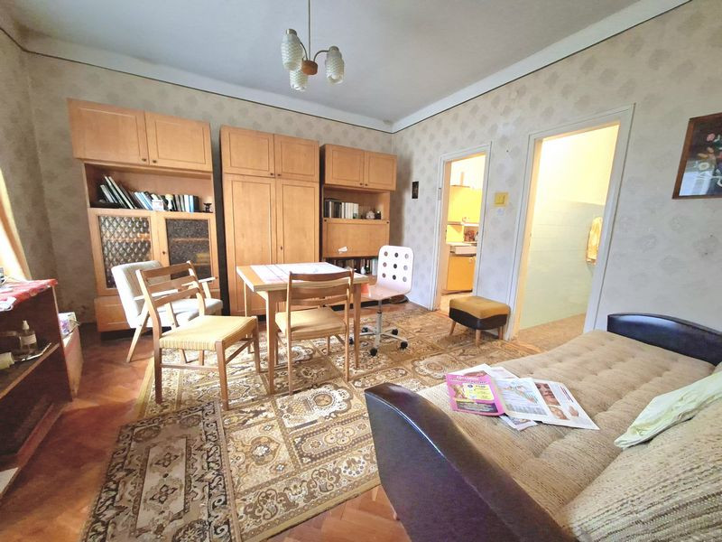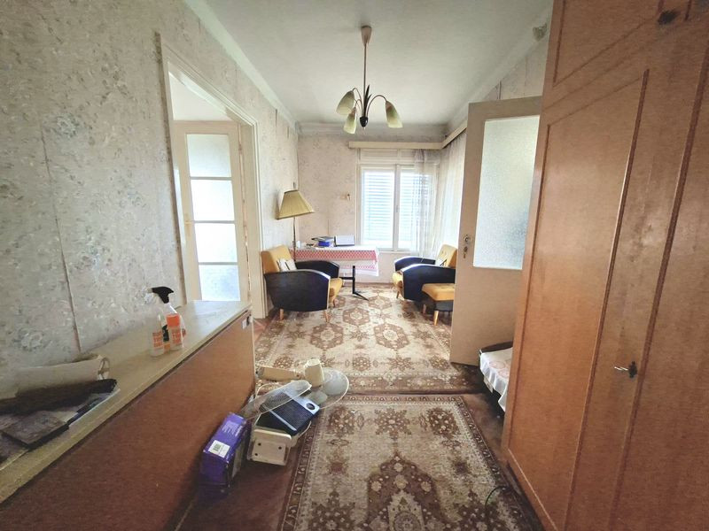 Az ingatlan felosztása a következőképpen alakul: előszoba (8.1m2), nappali (12.1m2), konyha (5.8m2), fürdőszoba + wc (5.8m2), 2 szoba (21.8m2, 15.9m2).