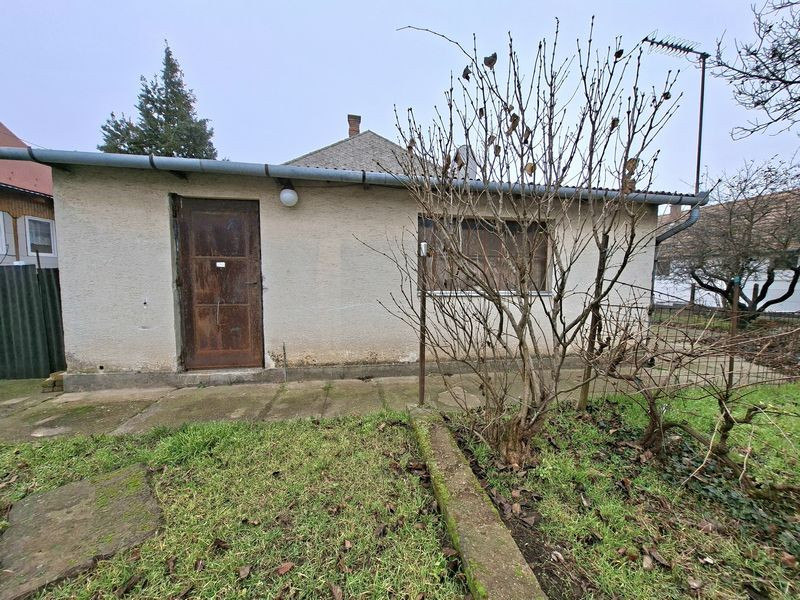 Ercsi csendes részén, aszfaltozott mellékutcában 1114m2-es szép nagy telken nappali + 2 szobás, összesen 69.5m2-es (+ különálló garázs) összközműves önálló családi ház eladó ásott kúttal.