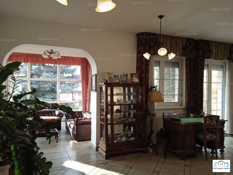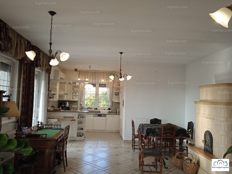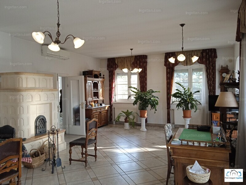 Érdligeten a városközpont közelében, átmenő forgalomtól mentes csendes családi házas környezetben, csodálatosan parkosított 1050 nm-es díszkertben, nettó 170nm lakóterületű családi villa, külön épületben vendégházzal 149 M Ft-ért eladó.