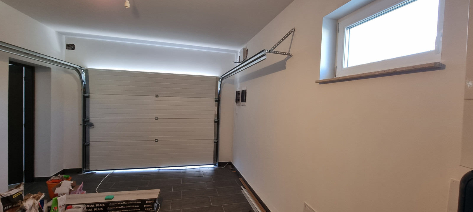 A zárt helyen történő parkolás lehetősége egy távirányításra is működő automatizált garázs biztosítja, aminek a térkővel burkolt felhajtóján további autó zárthelyen történő tárolása is biztosított. (Vagy igény esetén a garázs szobává is alakítható.)