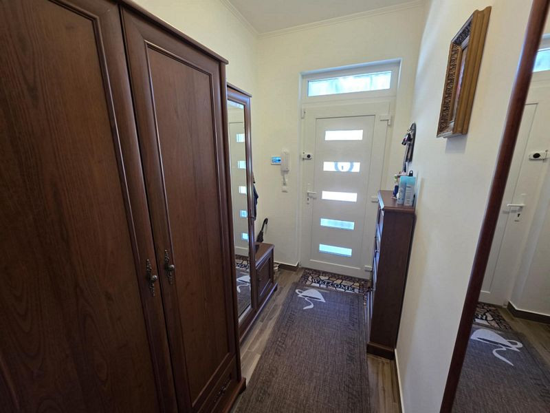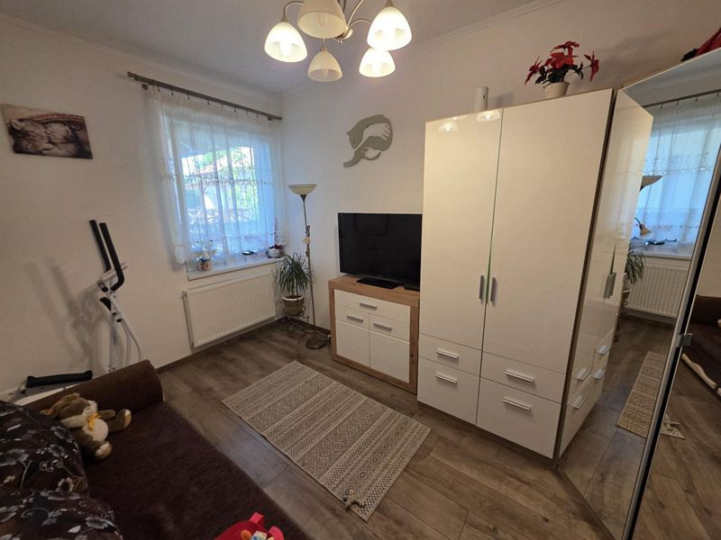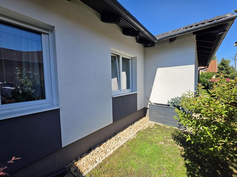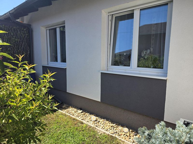 Szerkezeti leírás: Az ingatlan 2021-ben épült beton alapra. Tégla főfalak + 12cm dryvit szigetelés. Tégla válaszfalak. A külső nyílászárók műanyag szerkezetűek, 3 rétegű fokozott hőszigetelésű üvegezéssel ellátva, manuális redőnyökkel és szúnyoghálókkal felszerelve. A belső nyílászárók dekorfóliás ajtók. Fa szerkezetű födém + szigetelés + részben ledeszkázva, így pakolható is a padlás, mely világítással is ellátott. Cserép fedésű tető, alatta fóliázva.