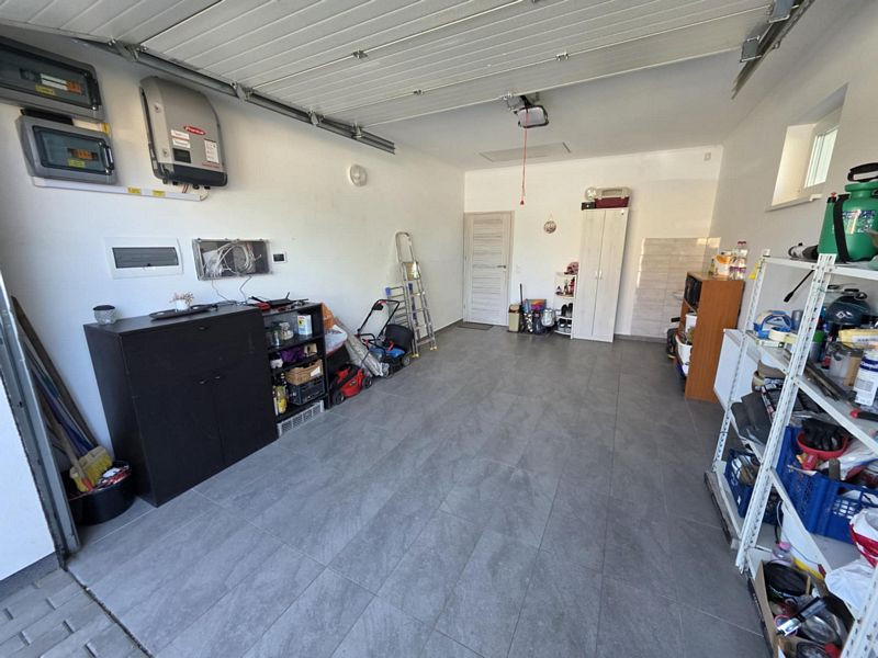 Extrák: napelem szaldós elszámolással, rejtett redőnytokos redőnyök, szúnyoghálók, 1 db. hűtő-fűtő klíma, beépített-gépesített minőségi konyhabútor (főzőlap, sütő, elszívó, mosogatógép, beépített mikró), beépített kis gardróbszekrény az előtérben, fürdőszoba bútor, kertben világítás mozgásérzékelőkkel, elektromos garázsajtó, elektromos nagykapu, nyitás-és mozgásérzékelős riasztó, átlagnál több dugalj és kapcsoló, beltéri falikarok, garázsban is hidegburkolat, polikarbonáttal fedett terasz, 280cm belmagasság.