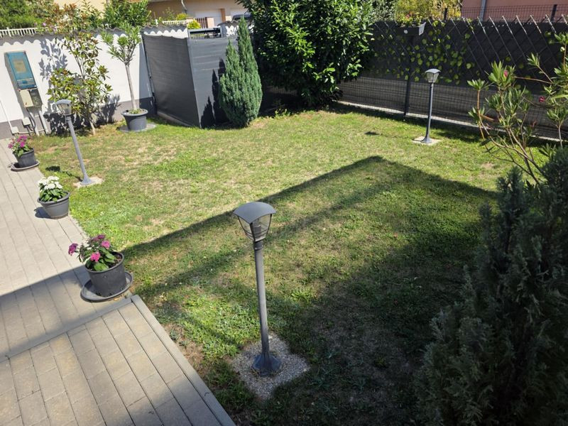 Közművek: víz, villany (3x16A), gáz, csatorna bekötve, önálló mérőórákkal ellátva + 4.5Kw-os napelem rendszer szaldós elszámolással. Közös költség nincs.