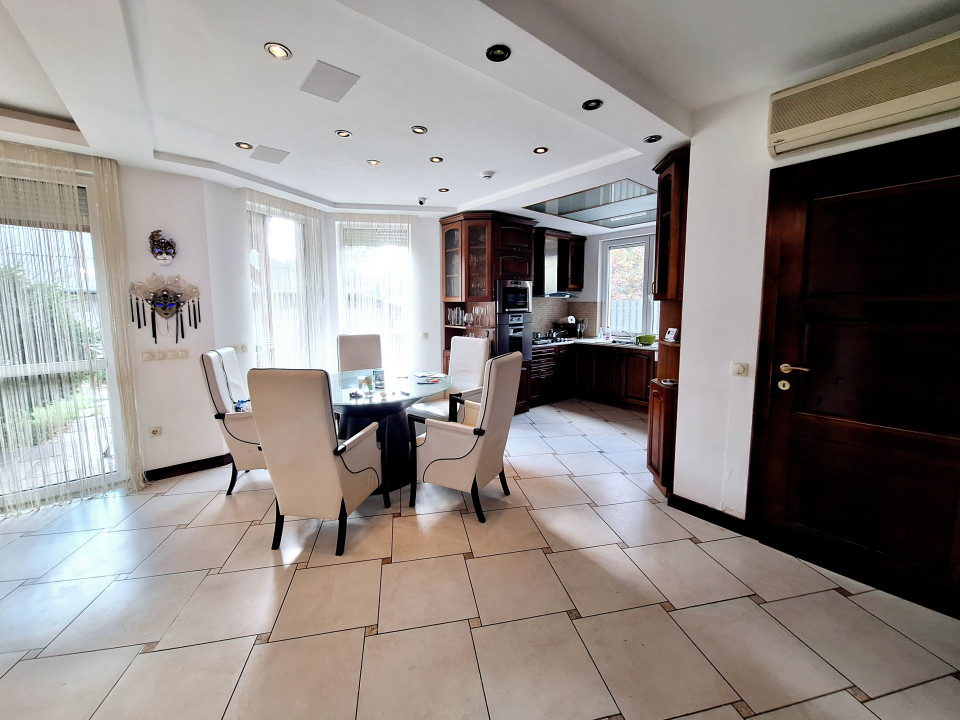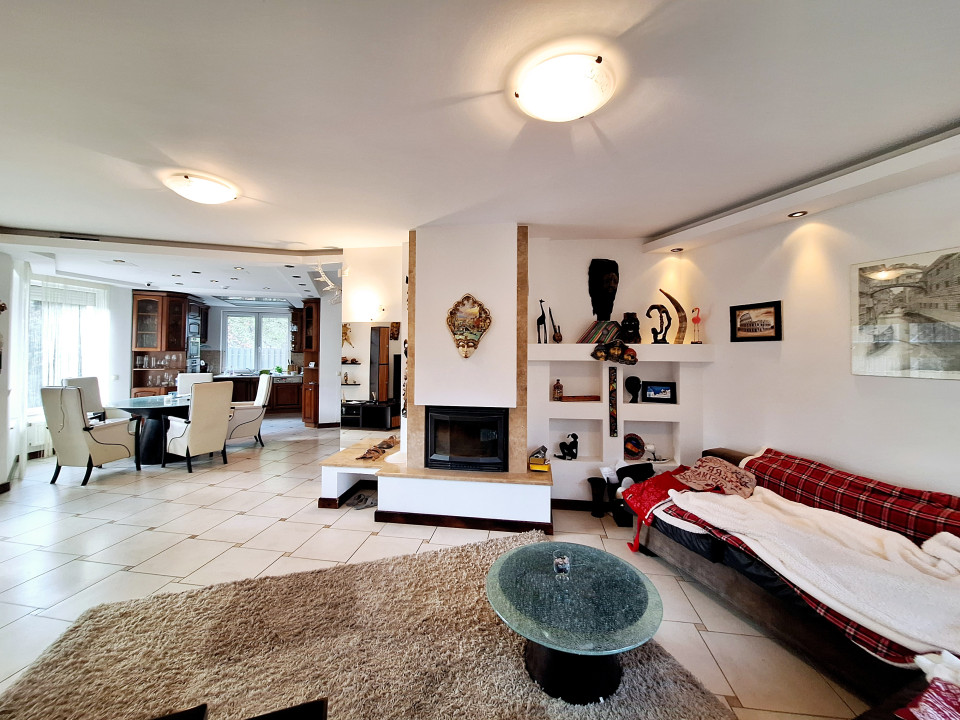 Földszint: előszoba (3,96m2), kamra (1,82), nappali (28,14m2) teraszkapcsolattal, étkező (15,3m2), minőségi gépekkel beépített konyha (7m2), háztartásihelyiség (4,84m2), WC (1,2m2), automatizált garázs (21,89m2)