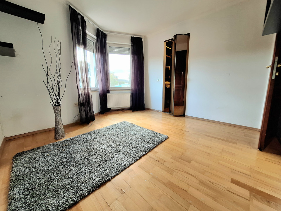 Emelet: közlekedő (4,5m2), fürdőszoba (8,8m2), szoba (9m2) gardróbbal (4,9m2), szoba (14m2), szoba (12m2) gardróbbal (5m2) erkéllyel (3m2)