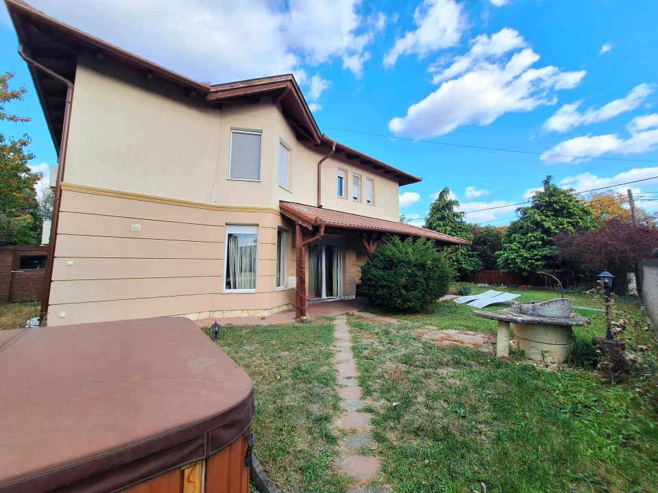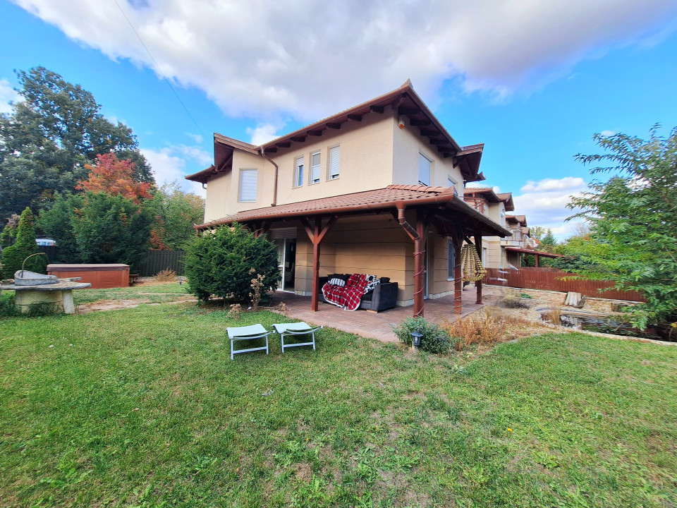 A lakáshoz saját elkerített PARKOSÍTOTT KERT tartozik, kerti tó, kő grill, dél-nyugati tájolású fedett terasz teszi az otthon tartózkodást kellemessé. A telken ÖNTÖZŐRENDSZER kiépítésre került. Az autóbeálló és a járda TÉRKÖVEZETT, a kiskapu és a nagykapu elektromos. A kertet DÍSZKIVILÁGÍTÁS teszi hangulatosabbá.