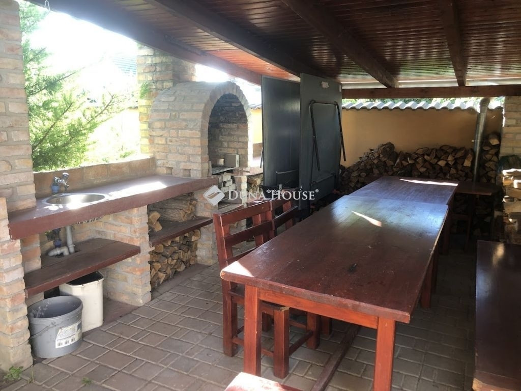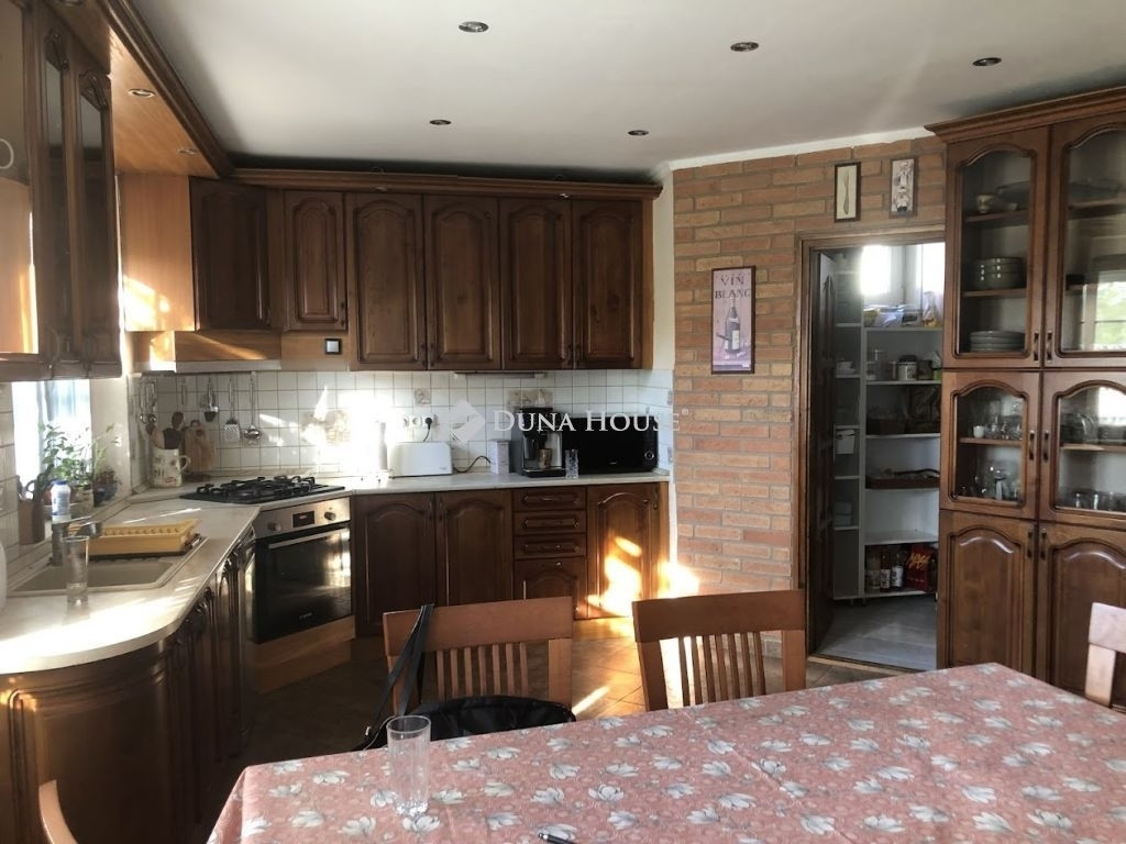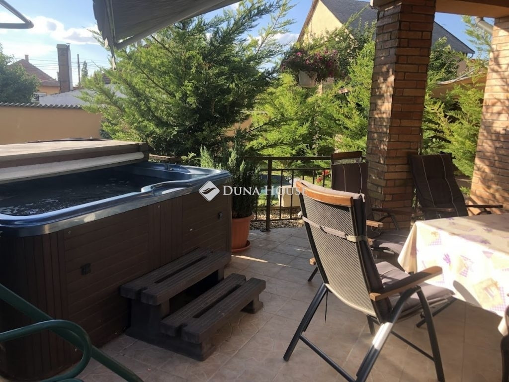 Mediterrán stílus kedvelői figyelem!Itt mindent megtalál, ami kell!Ha szereti a minőségi burkolatokat és az igazi fából készült konyhabútort és beépített szekrényeket, a tujákkal és virágokkal tarkított kertet, akkor érdemes a hirdetés elolvasása után időpontot kérni és személyesen is megnézni ezt az ingatlant!A ház belső kialakítása is jól megtervezett, hiszen nemcsak - közvetlen teraszkapcsolatos konyha van étkezővel, de van kamra is, - az árnyékos teraszon tölthetjük a vasárnapi ebédünket, de a jakuzziban is megmártózhatunk, - mindkét szinten van fürdőszoba, az egyik zuhanyzós a másik sarokkádas kialakítású, - a háztartási helységben elegendő hely van a mosó- és szárítógépnek is, - a szobák világosak és kettőhöz saját gardrób is tartozik, - a nappaliból jó időben közvetlenül a teraszra juthatunk ki, télen pedig bent egy kandalló biztosítja a tökéletes karácsonyi hangulatot, - kétállásos garázs felel az autóink biztonságáért, - további egyállásos garázsban van lehetőség például a kerékpárok, robogók tárolására, - a fedett sütőgető helyen nagyobb családi vagy baráti összejöveteleket is tarthatunk. A ház rezsije igen kedvező, mivel - 38 cm vtg-ban POROTHERM falazóblokkból készült, az egyedi gyártású ablakok fából, hőszigetelő üvegezéssel ellátva, - az ablakokon alumínium redőnyök vannak (új szúnyoghálókkal)- 2 db 3,5 kw hűtő/fűtő klíma egészíti ki a gázcirkó által működtetett radiátoros (szobákban) + padlófűtést (kerámia burkolatos helyiségekben)- 19 db napelem 5 kW-os inverterrel biztosítja, hogy a villanyszámlával már ne kelljen foglalkoznunk. Gondosan karbantartott ingatlan, ahová csak költözni kell.Várom megtisztelő hívását!