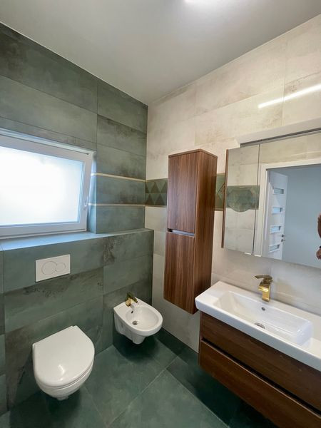 Szerkezeti leírás: Beton sávalap. 30-as tégla főfalak + 15cm dryvit szigetelés. 10-es tégla válaszfalak vakolva. A külső nyílászárók műanyag szerkezetűek, 3 rétegű fokozott hőszigetelésű üvegezéssel, belül fehér - kívül antracit színben és antracit színű elektromos redőnyökkel felszerelve okos központtal. A beltéri nyílászárók dekorfóliás ajtók. Fa födém + 25cm kőzetgyapot szigeteléssel. Betoncserép fedésű tető.