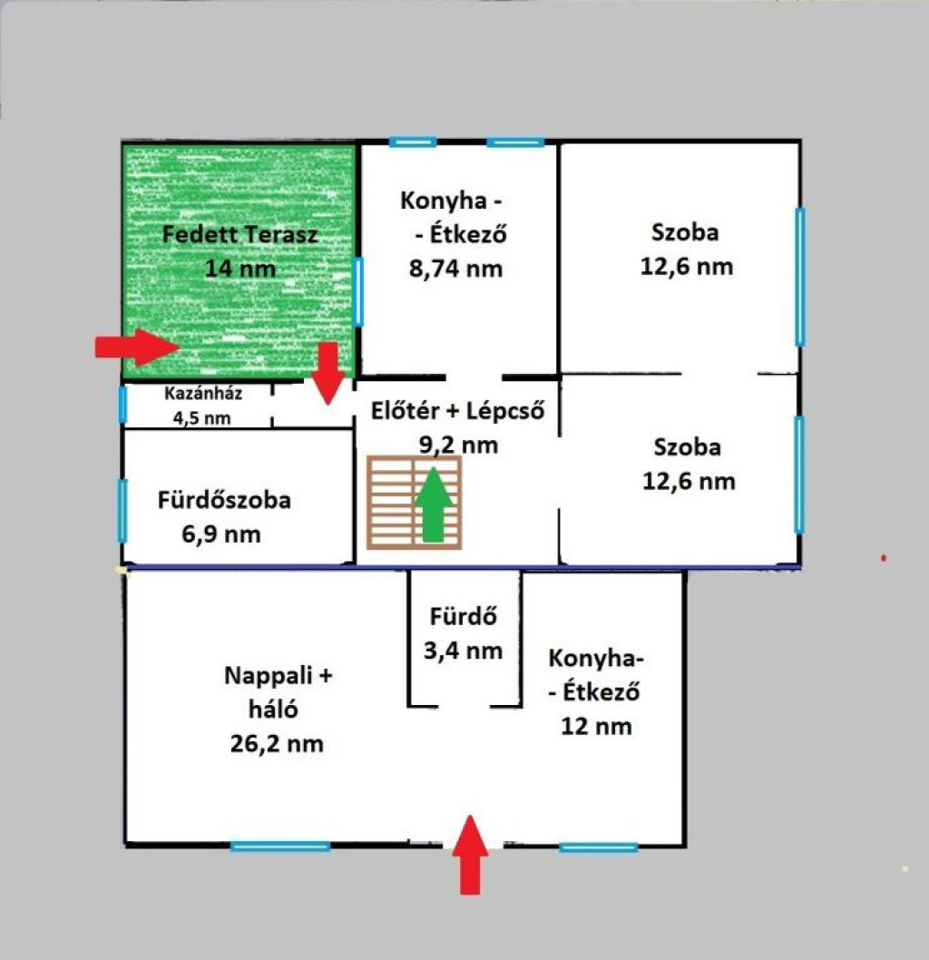 - Felnőttek a földszinten, tágas fürdővel,