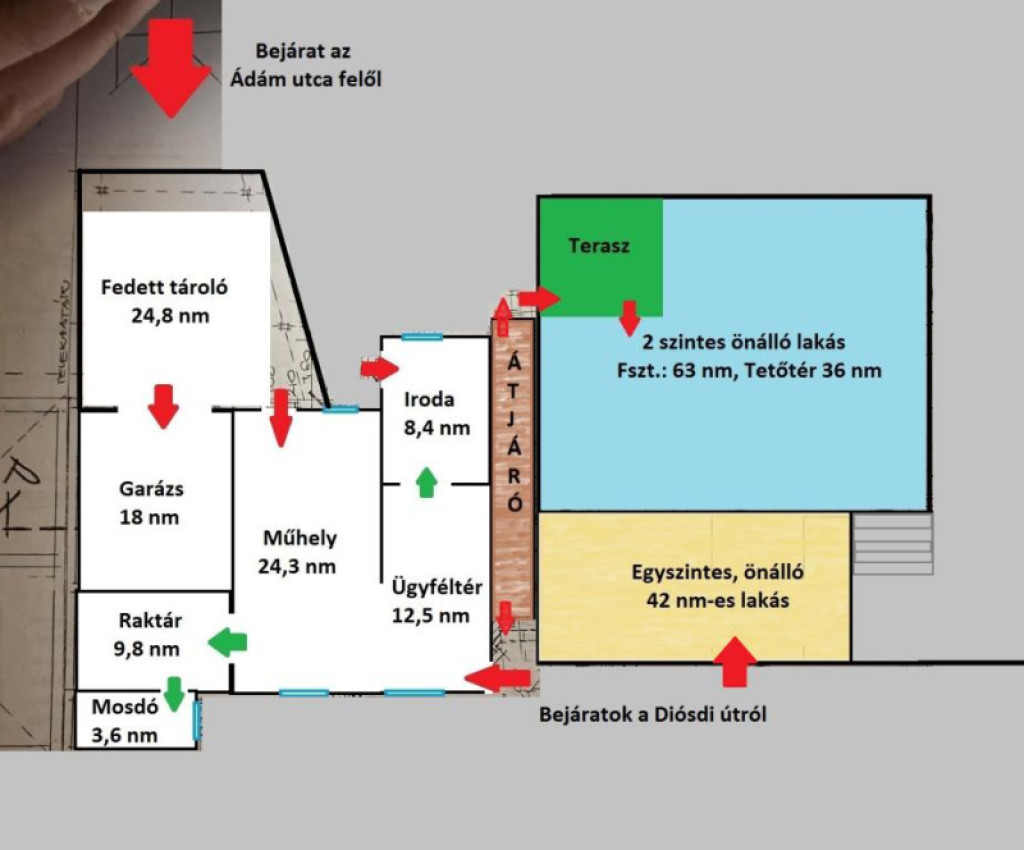Az ingatlannak két utcáról van bejárata.
