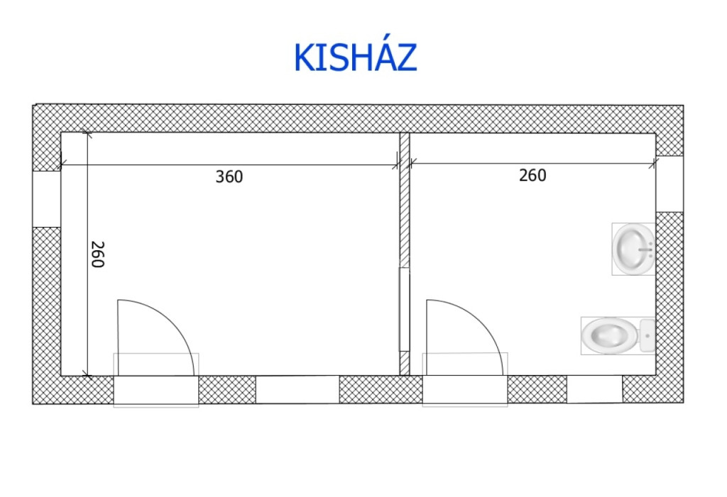 A KISHÁZAT nyárikonyhaként használták. Ide is be vannak vezetve a közművek. Ez az épület egy helyiségből és egy toalettből áll.