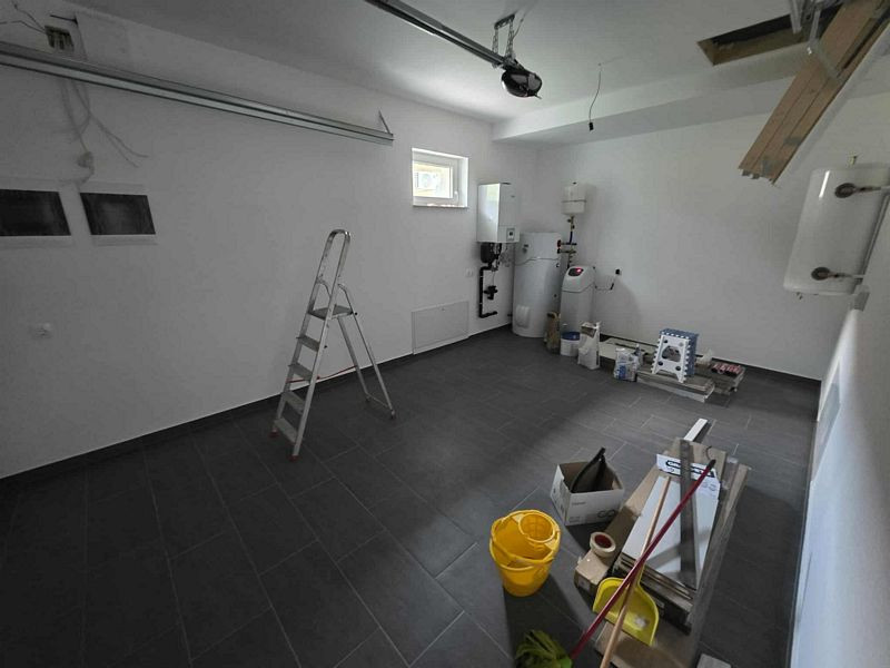 Fűtés, meleg víz ellátás: a fűtés 9Kw-os hőszivattyús rendszerről üzemel, minden helyiségben padlófűtésen keresztül. A meleg vizet 200L-es HMV tároló biztosítja.