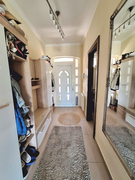 Extrák: napaelem rendszer, minden helyiség hűtő-fűtő klímával ellátott (nappali + 3 szoba), riasztó és kamerarendszer, szúnyogháló, redőny, fűthető 9 x 4,5 méteres kültéri medence, parkosított kert számtalan örökzölddel és gyümölcsfával, több körös öntözőrendszer, kerti sütögető, elektromos nagykapu és elektromos garázsajtó. A konyhabútor gépekkel együtt a vételár részét képezi.