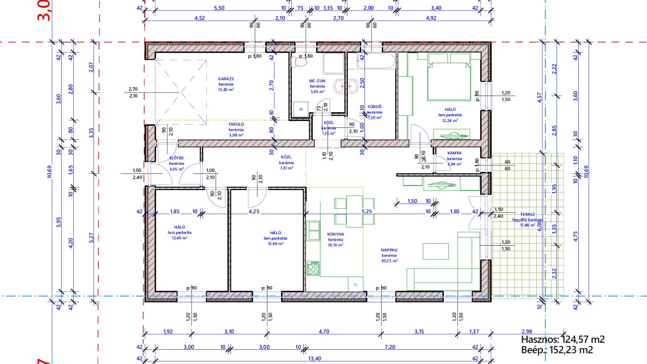 Opcióként a házhoz külön megegyezésben kérhető: redőny, szúnyogháló, fedett autóbeálló stb...