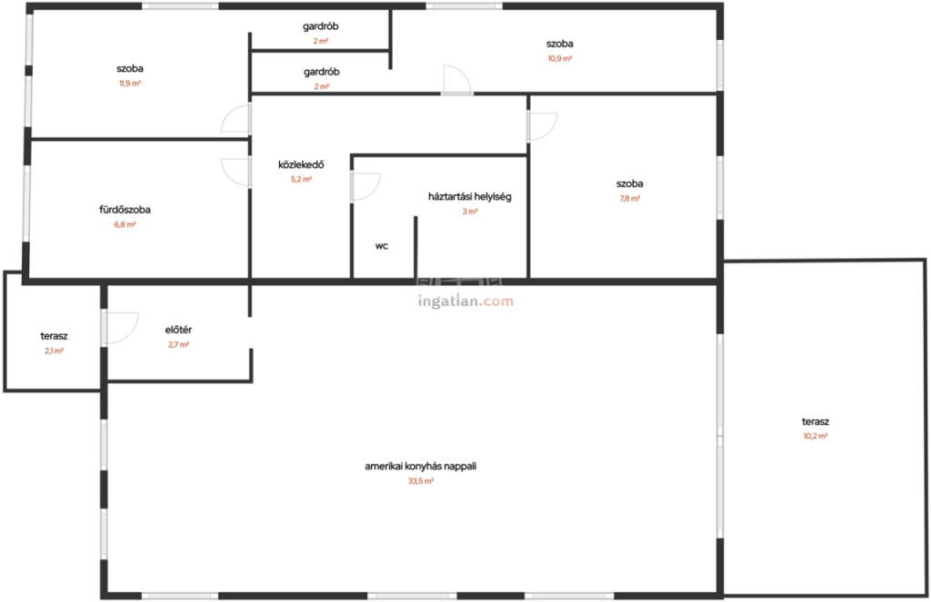 80 m² + 400 m² saját telek. 4 szoba (2 gardróbos) |