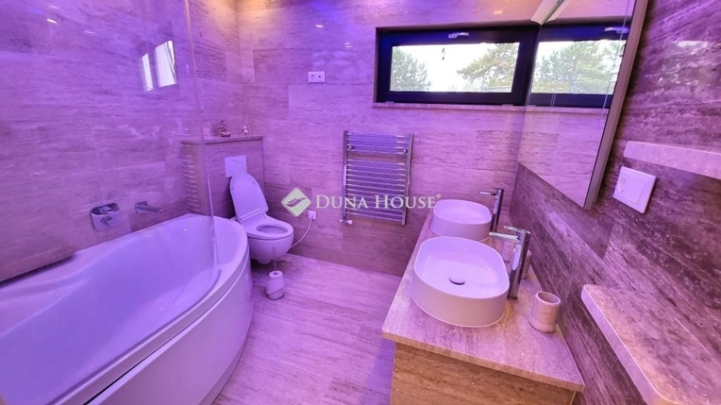 Három fürdőszobája biztosítja a kényelmet, melyek minőségi kivitelezése az egész házra jellemző.
