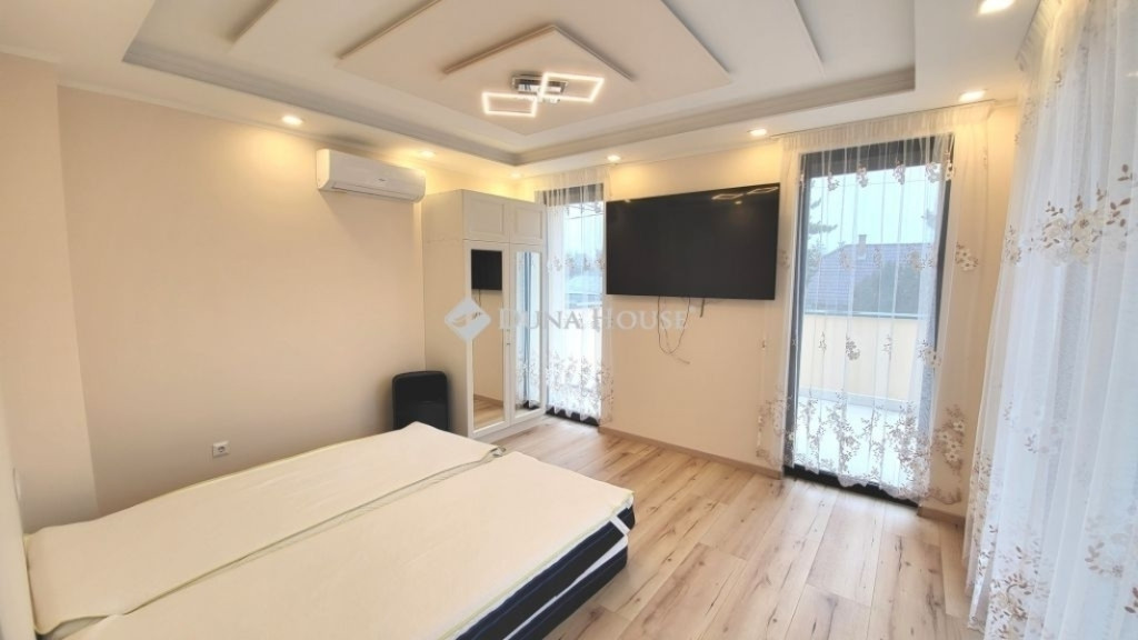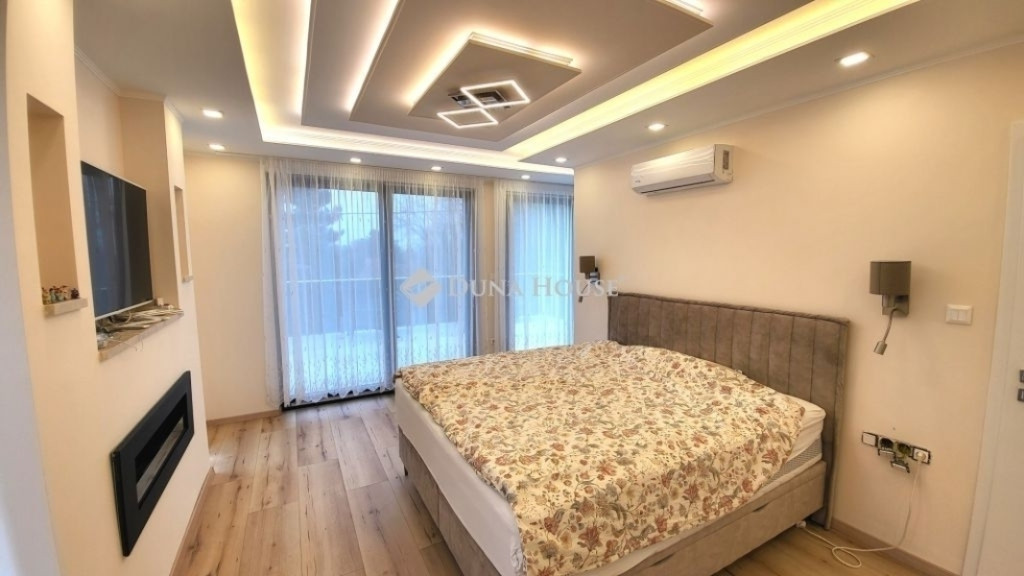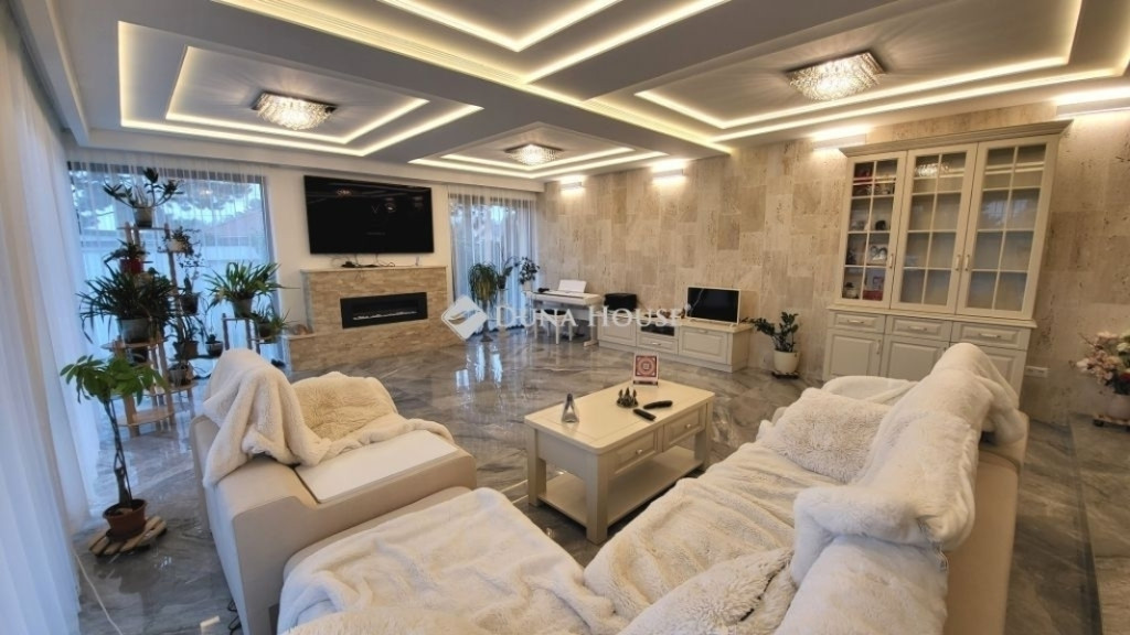 Eladásra kínálunk Érd Fenyves parkvárosban egy újszerű, 190 négyzetméter belső hasznos alapterületű, luxus családi házat. A csodálatos napfényes ingatlan egy 714 négyzetméteres telekkel büszkélkedik, melyhez egy hangulatos nyárikonyha is tartozik.Ez a prémium ingatlan tökéletes választás azok számára, akik nem hajlandóak kompromisszumot kötni sem az otthon kényelmét, sem annak luxusát illetően. Akár egy család álmai válnak valóra ebben a lenyűgöző ingatlanban, akár valaki igazán exkluzív környezetet keres magának és szeretteinek. Ne habozzon, keressen minket még ma, hogy megtekinthesse ezt a páratlan lehetőséget!Az otthon kényelmét növeli az elektromos redőnyök, a kamerarendszer és a központi porszívó rendszer kiépítése is, amit a modern kor elvárásainak megfelelően öt darab légkondicionáló egészít ki, így garantálva a kellemes hőmérsékletet a nyári kánikulában és a télies hűvös napokon egyaránt.Ez a különleges ingatlan három szobát és egy hatalmas, étkezős nappalit kínál, mellé egy óriás méretű, minden igényt kielégítő konyhával. Három fürdőszobája biztosítja a kényelmet, melyek minőségi kivitelezése az egész házra jellemző. Nappaliban és további helyiségekben elhelyezett három bioetanol kandalló gondoskodik a meghitt hangulatról a hideg estéken. ÁR: 270M ft