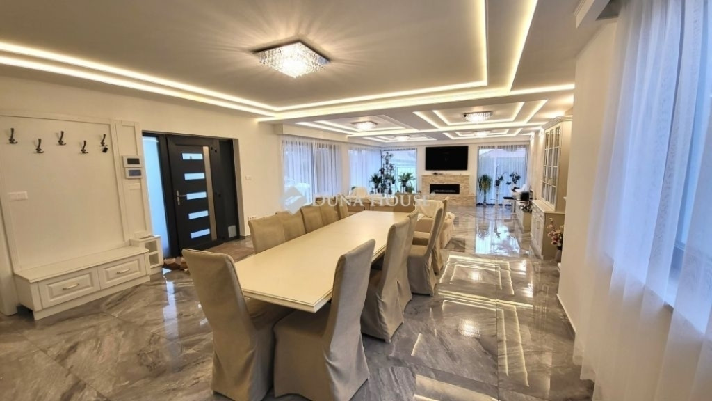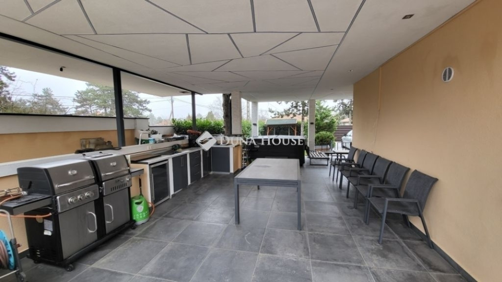 Eladásra kínálunk Érd Fenyves parkvárosban egy újszerű, 190 négyzetméter belső hasznos alapterületű, luxus családi házat. A csodálatos napfényes ingatlan egy 714 négyzetméteres telekkel büszkélkedik, melyhez egy hangulatos nyárikonyha is tartozik.Ez a prémium ingatlan tökéletes választás azok számára, akik nem hajlandóak kompromisszumot kötni sem az otthon kényelmét, sem annak luxusát illetően. Akár egy család álmai válnak valóra ebben a lenyűgöző ingatlanban, akár valaki igazán exkluzív környezetet keres magának és szeretteinek. Ne habozzon, keressen minket még ma, hogy megtekinthesse ezt a páratlan lehetőséget!Az otthon kényelmét növeli az elektromos redőnyök, a kamerarendszer és a központi porszívó rendszer kiépítése is, amit a modern kor elvárásainak megfelelően öt darab légkondicionáló egészít ki, így garantálva a kellemes hőmérsékletet a nyári kánikulában és a télies hűvös napokon egyaránt.Ez a különleges ingatlan három szobát és egy hatalmas, étkezős nappalit kínál, mellé egy óriás méretű, minden igényt kielégítő konyhával. Három fürdőszobája biztosítja a kényelmet, melyek minőségi kivitelezése az egész házra jellemző. Nappaliban és további helyiségekben elhelyezett három bioetanol kandalló gondoskodik a meghitt hangulatról a hideg estéken. ÁR: 270M ft
