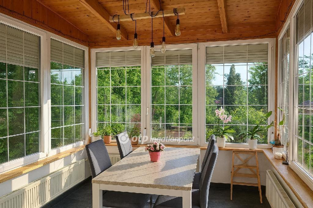Érd-Parkváros egyik legkedveltebb, csendes és zöldövezeti részén, kiváló közlekedéssel kínálunk megvételre egy 199 nm-es, 2005-ben szerkezetileg újjáépített, majd 2022-ben belső és részleges külső felújításon átesett, hangulatos és egyedi családi házat tele extrákkal! Az ingatlan különlegessége, hogy a modern megoldások és a barátságos, otthonos hangulat tökéletes harmóniában találkozik, így minden családtag megtalálja benne a saját kényelmét. A ház tágas, világos terekkel, gondosan átgondolt elrendezéssel rendelkezik, a modern, gépesített konyha és az étkező különösen vonzó, hiszen három oldalról üvegfalakkal körbevett, így lenyűgöző kilátást nyújt a kertre. A két fürdőszoba, a külön mosdók, a praktikus mosókonyha és a sportszoba infraszaunával a mindennapok kényelmét szolgálják, míg a két nagy erkélyről a környező erdős terület panorámájában gyönyörködhetünk. A kert és az udvar igazi életteret kínál: az elülső rész elektromos kapuval felszerelt, két autó számára biztosít parkolási lehetőséget, miközben az utcán további parkolóhelyek is rendelkezésre állnak. A szeparált hátsó kert közvetlenül a kiserdőre néz, árnyékos pihenőterekkel és egy teljesen felszerelt hangulatos nyári konyhával, ahol 3 fázis, víz, csatorna és mosogatógép bekötési lehetőség áll rendelkezésre. A kertben homokszűrős medence és gyerekek számára kialakított játékbirodalom is megtalálható. Az öntözést vezetékes víz és ciszterna szivattyúval egyaránt biztosítja, ami gazdaságossá és fenntarthatóvá teszi a kert gondozását. Az ingatlan műszaki felszereltsége is kiemelkedő: többféle fűtési rendszer áll rendelkezésre, köztük gázkazán, vegyes tüzelésű kazán, elektromos padlófűtés a hidegburkolatoknál és egy panorámás üvegkandalló, amely nemcsak látványos, de hatékony fűtési megoldást is kínál. A hatékony energiafelhasználást a H tarifás mérőóra, több darab wifi vezérelt, hőszivattyús split klíma, a felújított elektromos hálózat két darab 3 fázisú mérőórával, valamint az időkapcsolós, wifi-vezérelt kültéri világítás teszi teljessé. Elhelyezkedését tekintve az ingatlan rendkívül kedvező: az M7 autópálya néhány perc alatt elérhető, Budaörs autóval kevesebb mint 10 perc, a közelben buszmegálló található, a vonatállomás is könnyen megközelíthető. Nagyáruházak, Spar, Lidl és egyéb bevásárlási lehetőségek perceken belül rendelkezésre állnak, miközben a környék nyugodt, biztonságos, barátságos lakóközösséggel, játszóterekkel és természetközeli kirándulási lehetőségekkel. Ez a ház nem egy modern, egyforma kockaépület, hanem egy szeretettel és nagy gonddal felújított otthon, amely egyszerre sugároz egyéniséget és praktikusságot. Az ingatlan hitelezhető, tehermentes, tiszta tulajdoni lappal rendelkezik. Ha egy jól átgondolt, modernizált, mégis bájos és egyedi családi otthont keres Érd egyik legjobb részén, akkor keressen bizalommal a hét bármely napján!