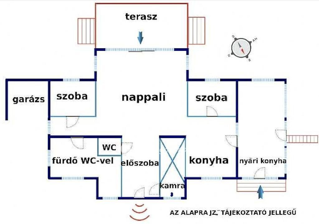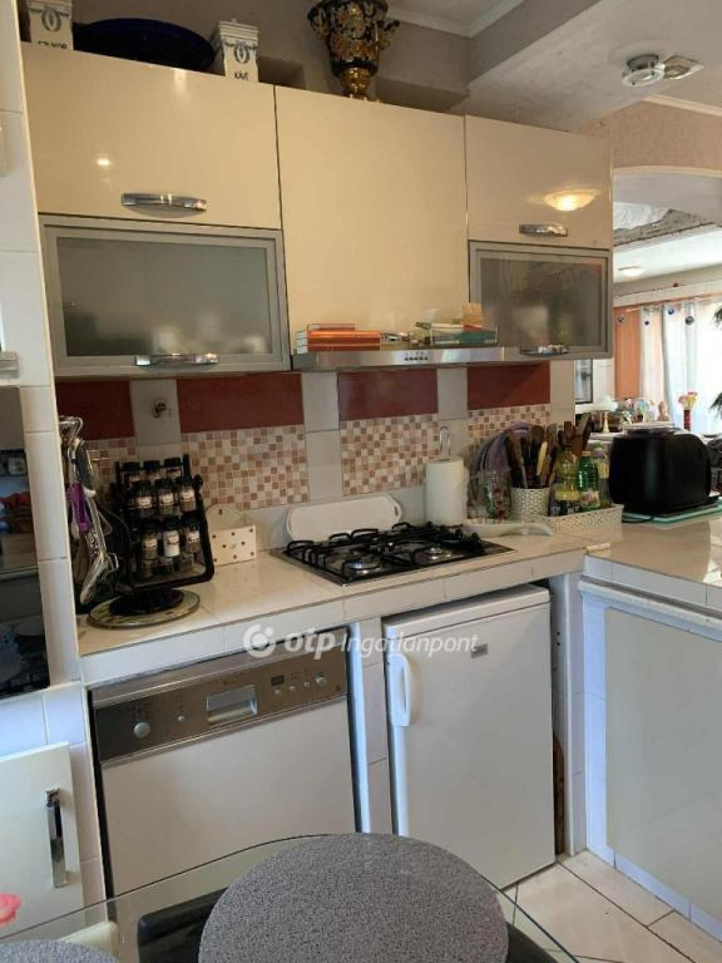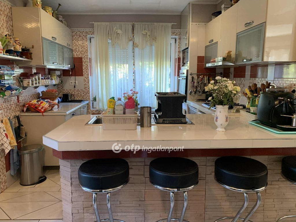 Jelenlegi állapotában csak a családi ház földszinti 110 m2-es részét tudják az ott lakók maximálisan kihasználni, mivel a felső szint még kialakításra vár, de már így is egy kellemes, hangulatos, családias otthon került kialakításra, amely új lakóját várja.