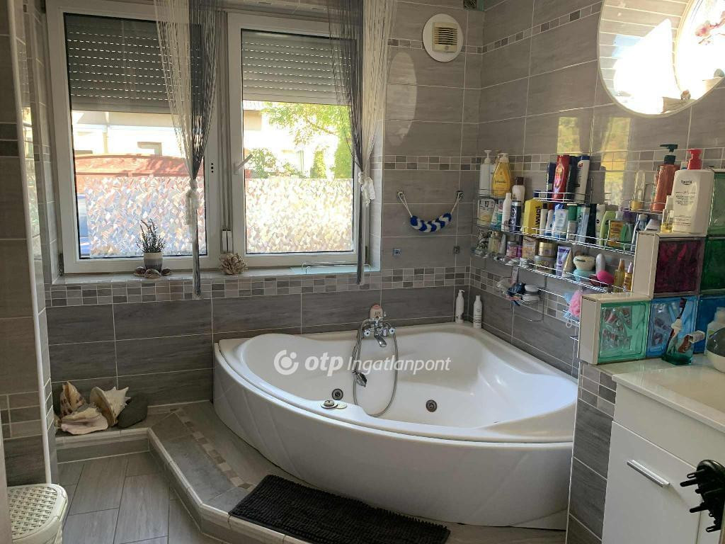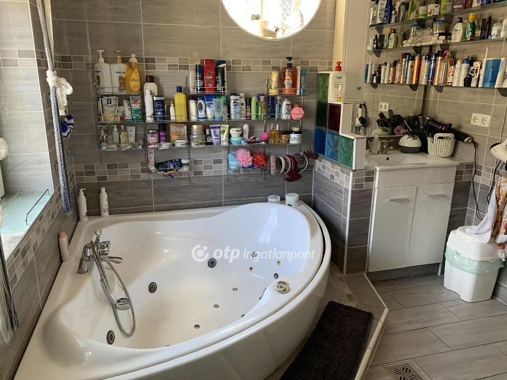 Jelenlegi állapotában csak a családi ház földszinti 110 m2-es részét tudják az ott lakók maximálisan kihasználni, mivel a felső szint még kialakításra vár, de már így is egy kellemes, hangulatos, családias otthon került kialakításra, amely új lakóját várja.