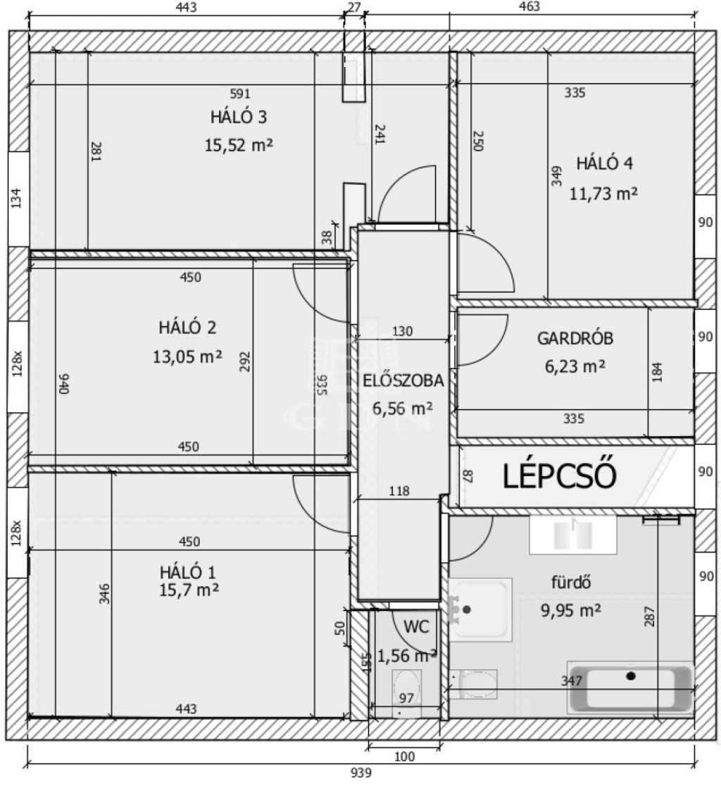 • Fürdőkádas és zuhanyzós fürdőszoba WC-vel