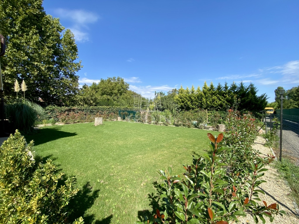 • A nappaliból nyíló hatalmas terasz, amely közvetlen kapcsolatot biztosít a gyönyörűen parkosított kerttel