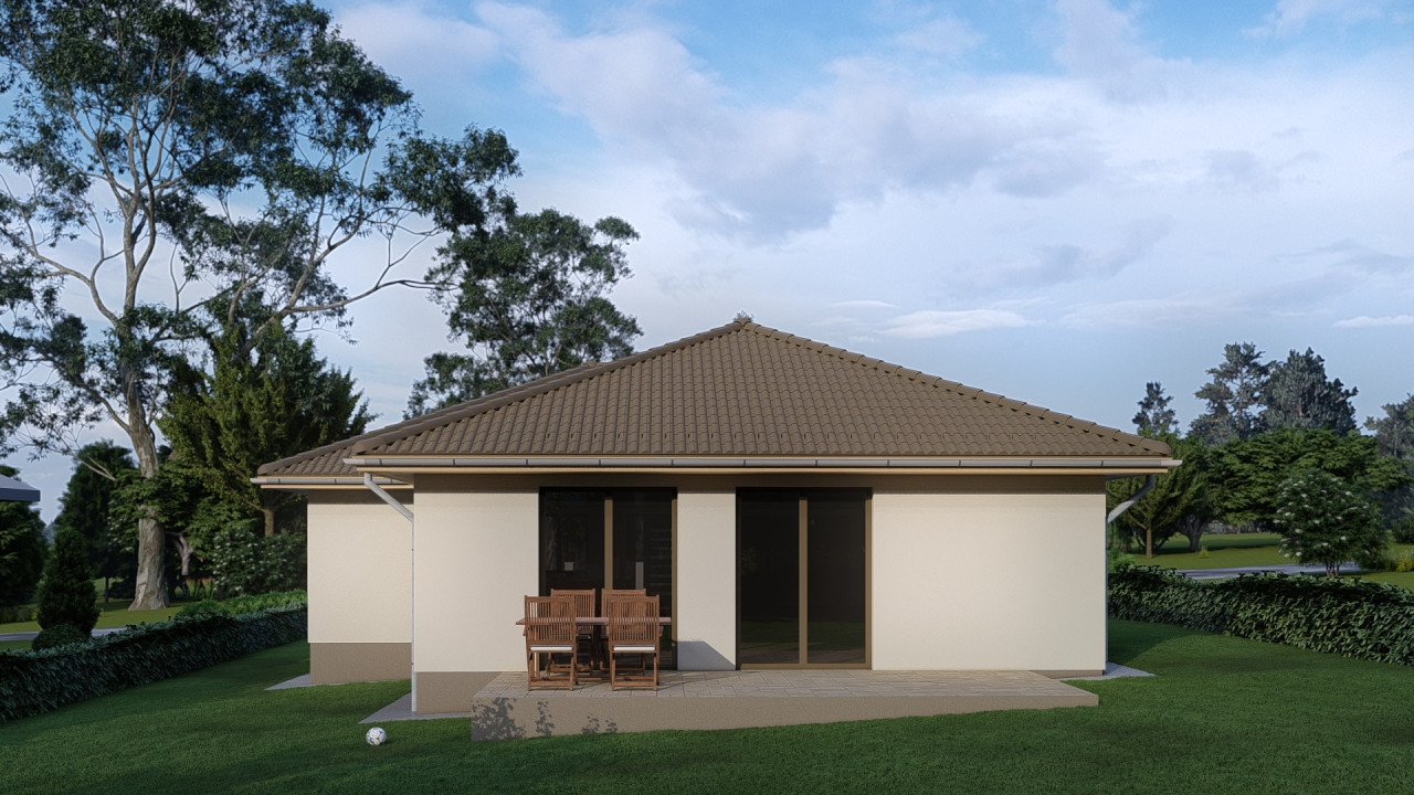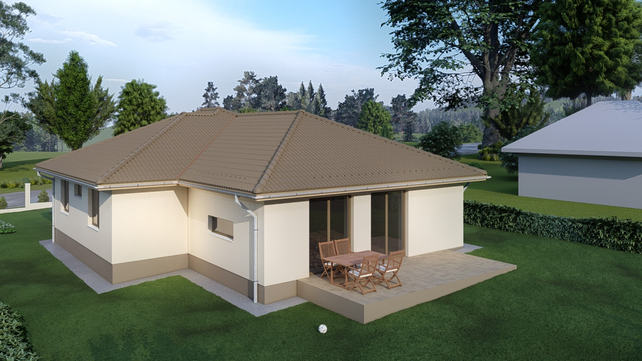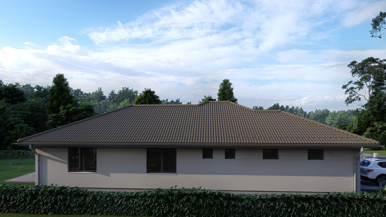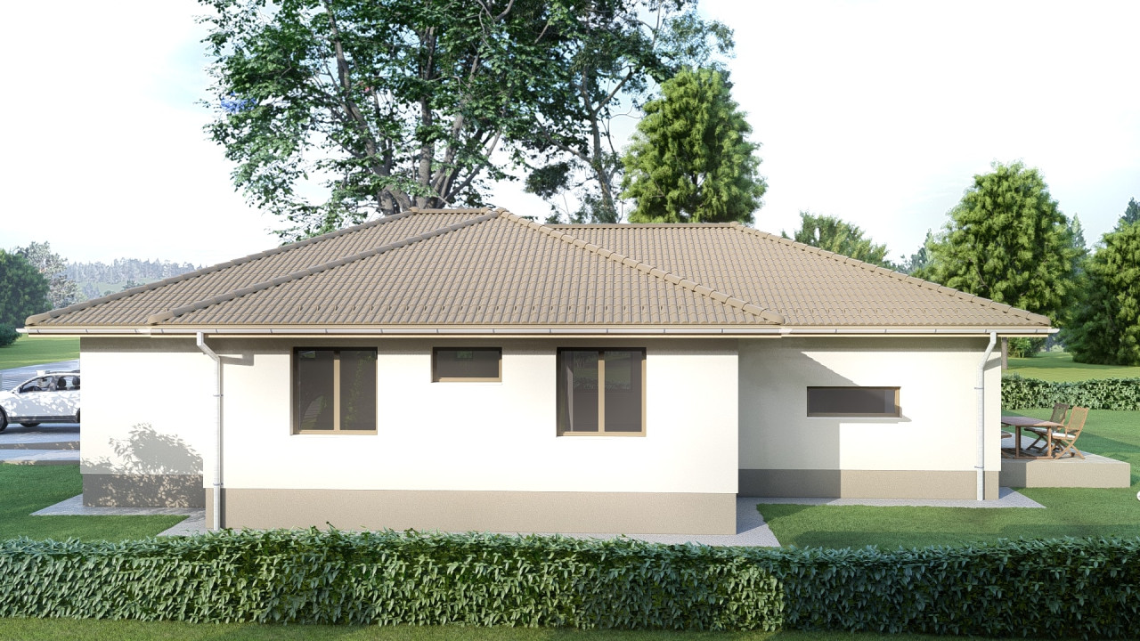 A ház hátsó szegletében került elhelyezésre a szülői blokk. Egy 16 m2-es hálószoba amihez 5 m2-es gardrób és saját 5 m2-es fürdőszoba is tartozik épített zuhanyzóval. A nappaliból közvetlen kijárat nyílik a hátsó kertre tekintő 18 m2-es teraszra.