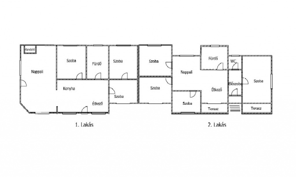 A nagyobb, 100 nm-es, 4 szobás, nappalis, étkező-konyhás, sarokkádas fürdővel, külön WC-vel rendelkezik.