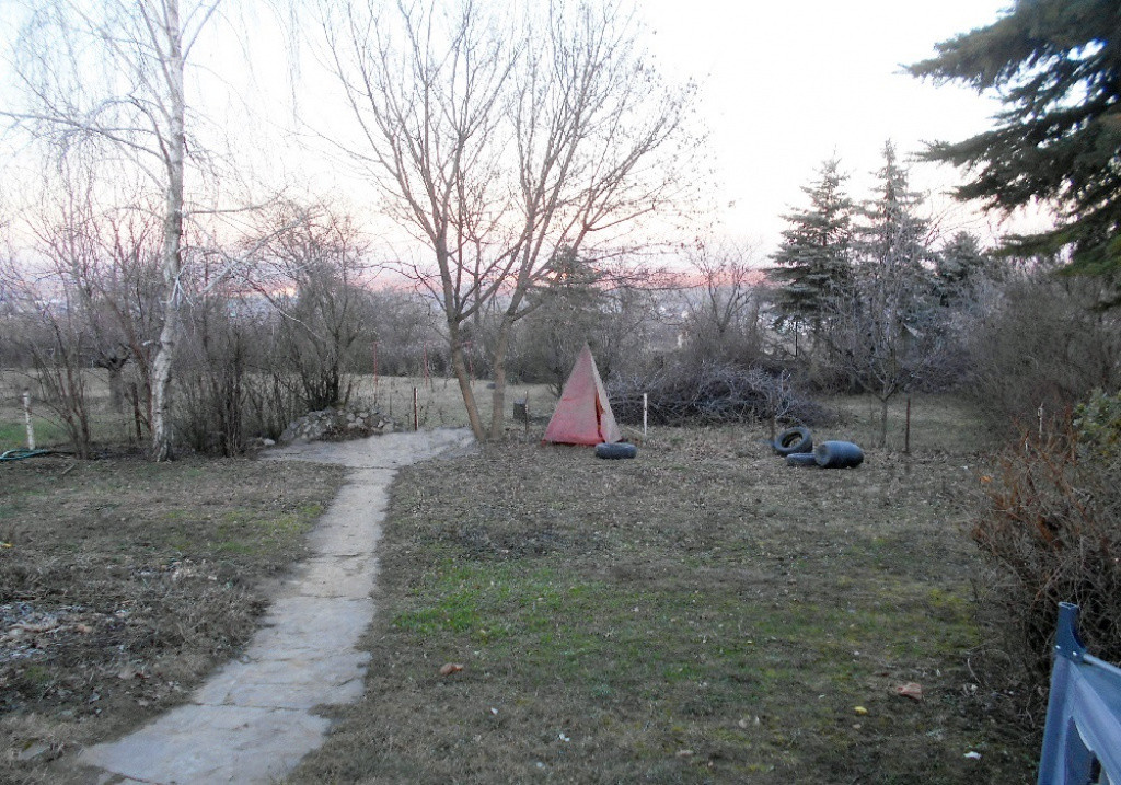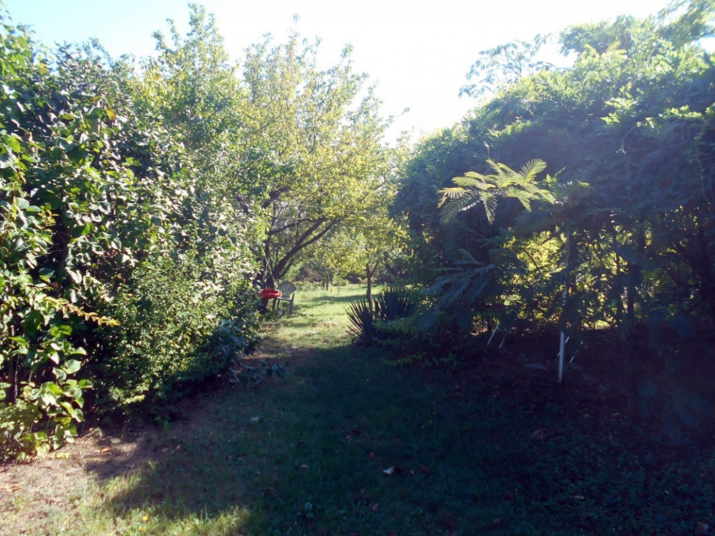 A gondozott, parkos kertben sok termőgyümölcsfa is van.