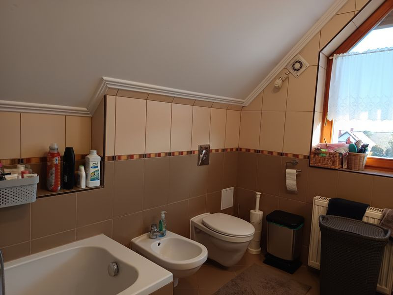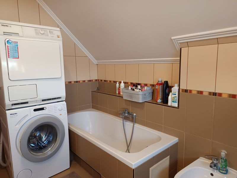 Fűtés, meleg víz ellátás: Az ingatlan fűtését kondenzációs gázcirkó látja el, minden helyiségben radiátoros hőladókon keresztül, illetve rendelkezésre áll egy cserépkályha is, valamint kandallónak alkalmas kémény is kiépítésre került. A tetőtérben külön vezérelhető a fűtés. A meleg vizet gázbojler szolgáltatja.