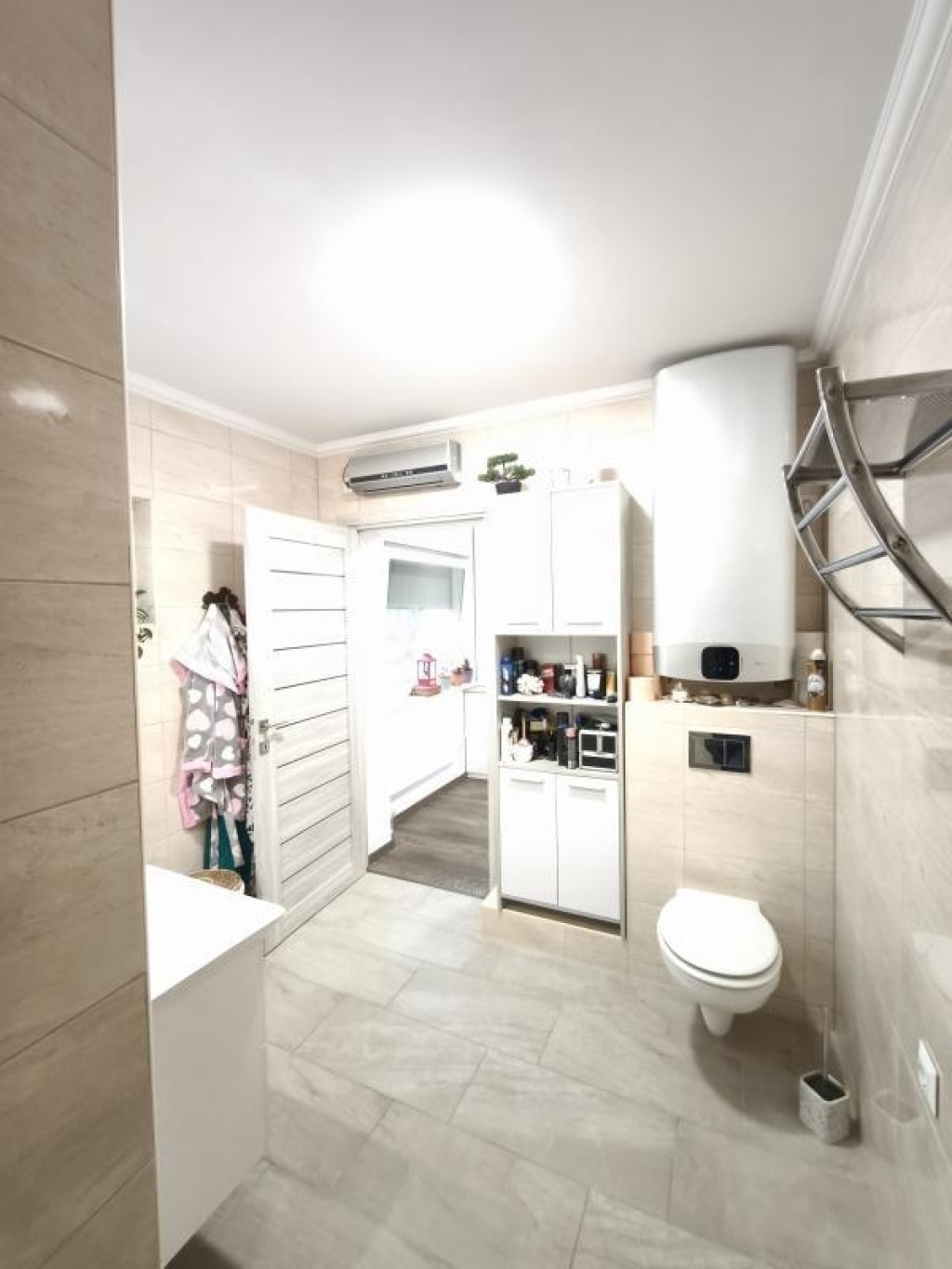 A melegvíz-ellátást okos bojler biztosítja, mely gazdaságos és kényelmes használatot tesz lehetővé. Az amerikai konyhás nappaliban új, prémium kategóriás konyhabútor került beépítésre, magas minőségű háztartási gépekkel, így az ingatlan azonnal költözhető, további beruházást nem igényel.