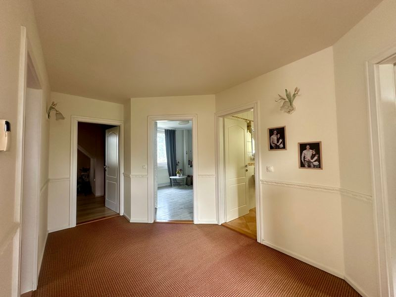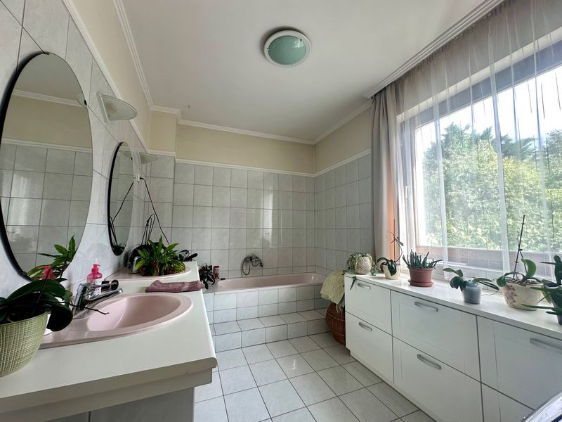 Érd Tusculanumban kiváló közlekedésnél csendes, nyugodt családi házas övezetben 707m2-es telken eladó egy szép állapotban lévő belső kétszintes + pince szint, nappali + 4 szobás, dupla komfortos, összesen 246.22m2-es (+ teraszok) önálló családi ház, pincében 2 gk-s garázzsal, műhellyel.