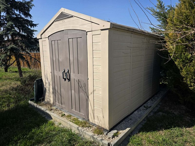 A telken található egy 7m2-es tároló épíület, valamint egy 10m2-es szaletli is.