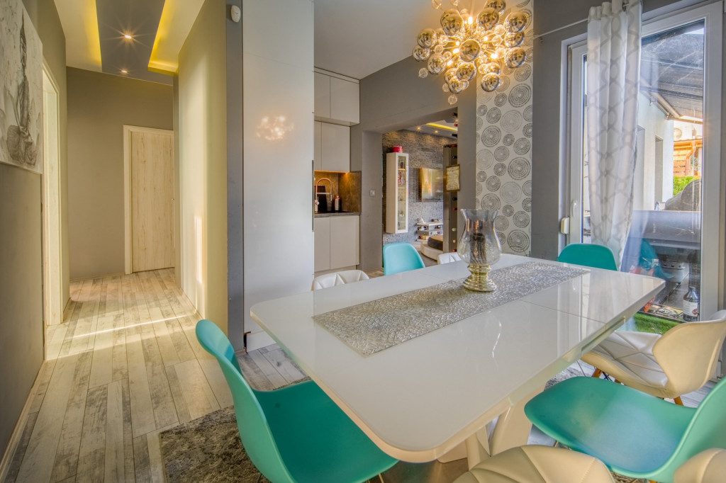 Kövező utca 69. nettó 109 m2, a telek mérete 446 m2, a terasz 23 m2.