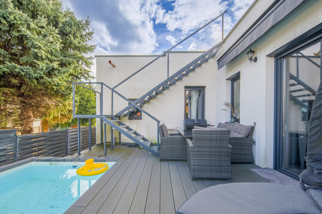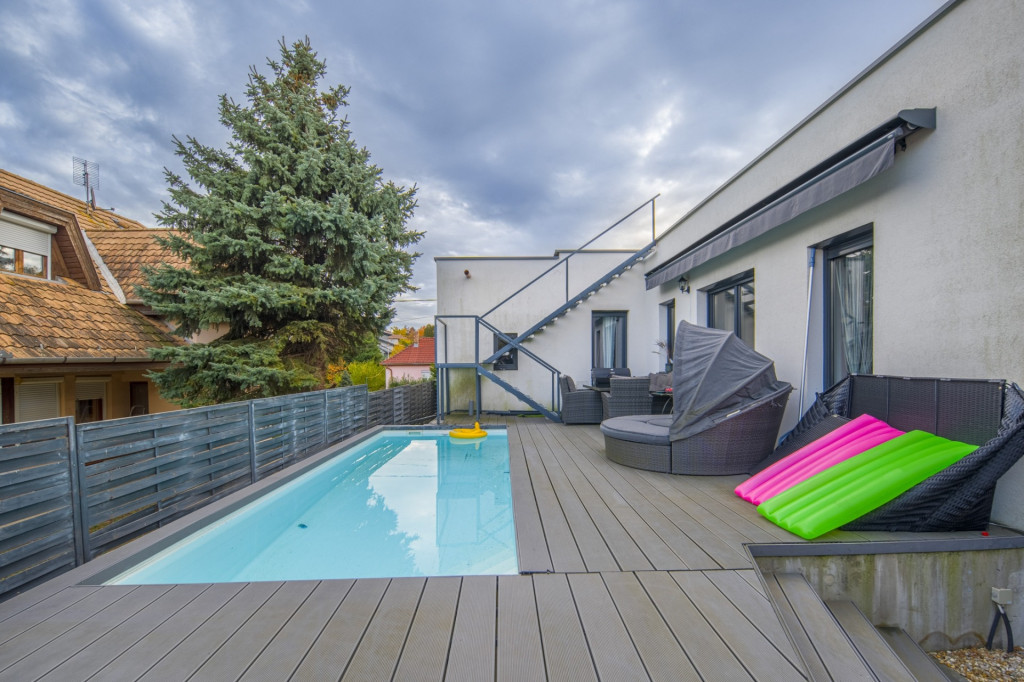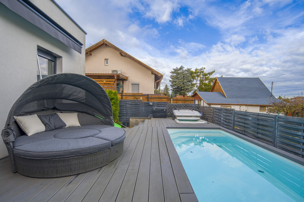 Eladó Érd legjobb részén egy egyszintes, 3 hálós, medencés, panorámás, újszerű, önálló családi ház.