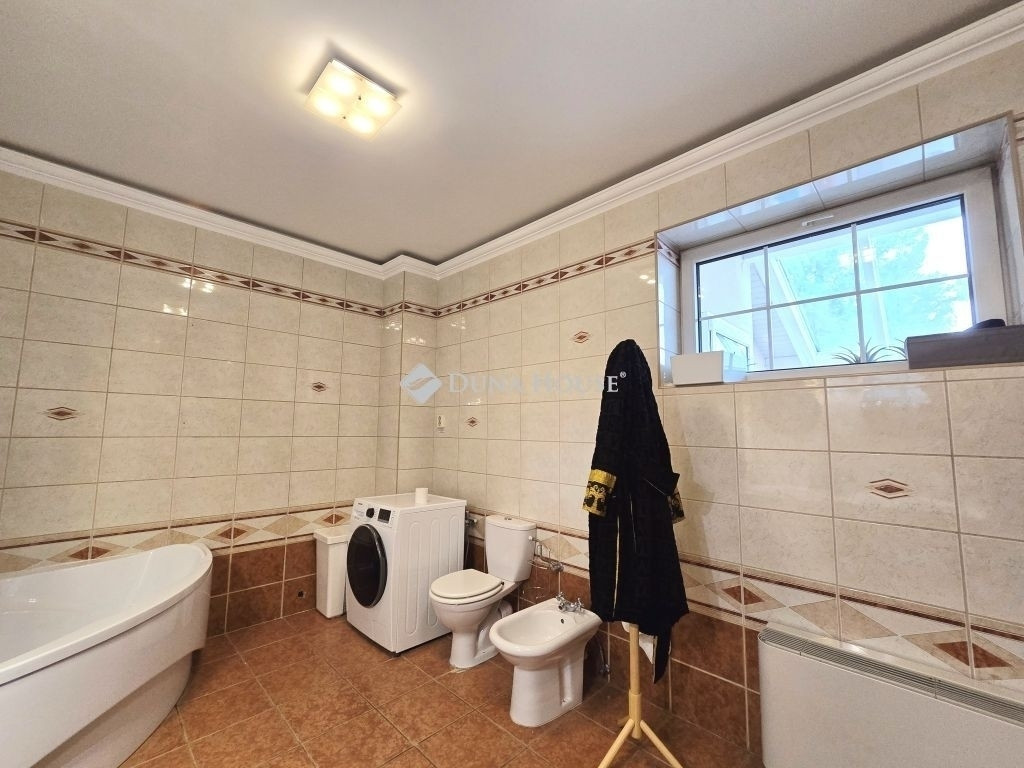 A földszinten és az emeletes is kivételesen nagy fürdőszoba található.