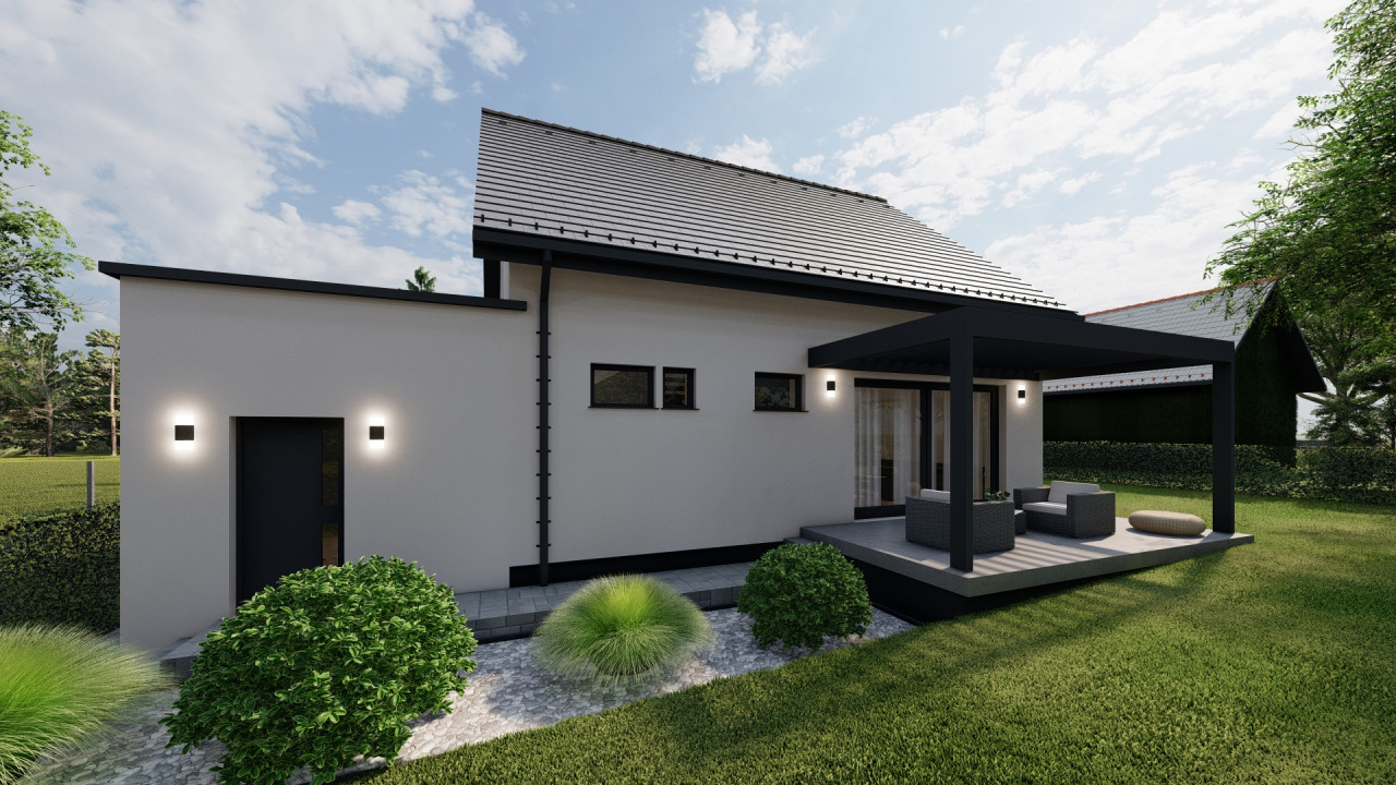 A ház 30-as téglából épül, amit 15 cm-es polisztirolszigeteléssel burkolnak körbe, a födémre 30cm szigetelés kerül, a tető fedése Bramac cserép. A külső nyílászárók műanyag ajtók és ablakok 3 rétegű üvegezéssel, bukó-nyíló kivitelben. A RIASZTÓ és NAPELEM előkészítést a vételár tartalmazza.