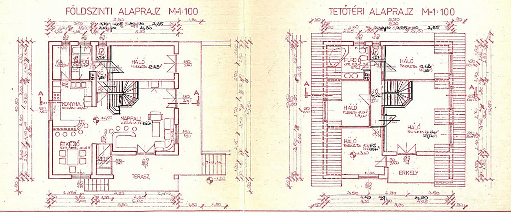 A tetőtérben további 4 hálószoba, fürdő, WC és közlekedő található, így nagycsaládos használatra is alkalmas: