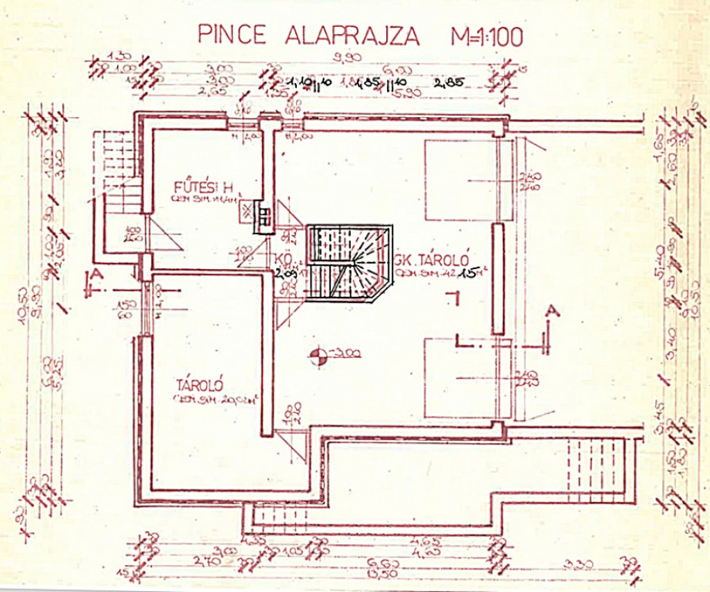 A pince szint nettó alapterülete összesen kb. 73,5 m².