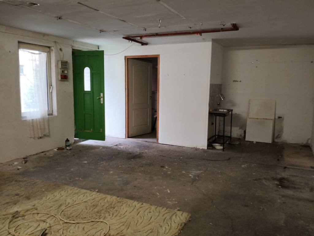 kb. 7,5 × 5 m-es műhely (kb. 37,5 m²) kis fürdővel,