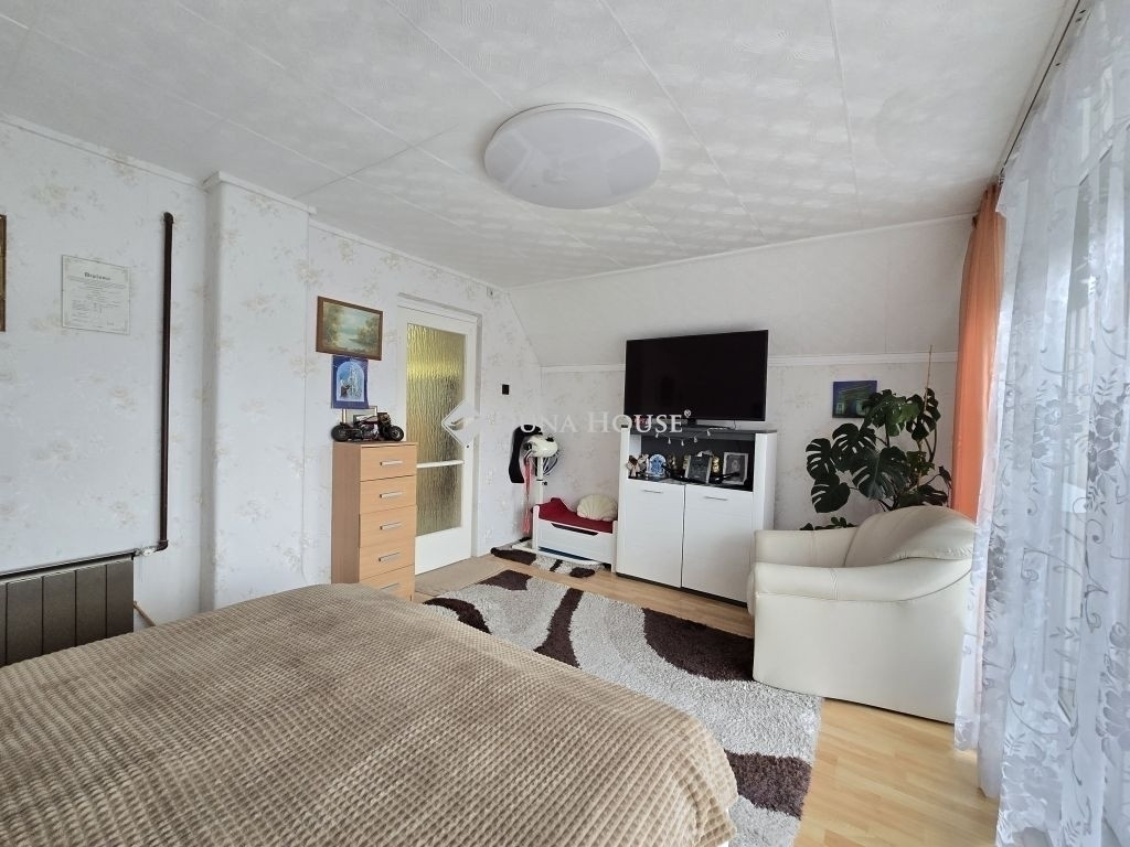 A pince 37 nm-es itt található a gázkazán és a vegyestüzelésű kazán, a Ny-i tájolású 90 nm-es földszinten két közel 20 nm-es utcafronti szoba található, fürdőszobával, külön WC-vel, konyhával, étkezővel és tárolóval. Az emelet 39 nm-es, egy hálószoba, fürdőszoba és konyha étkezővel került kialakításra. A padlástér beépíthető. A jelenlegi beosztással akár két generáció együttélésére is alkalmas a ház.