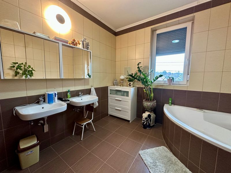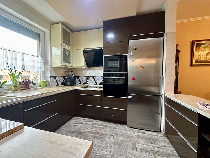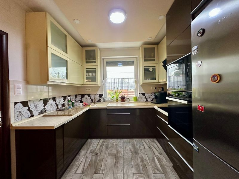 EXTRÁK, amelyeket a vételár magában foglal: beépített - gépesített konyhabútor (főzőlap, sütő, mikró, mosogatógép, hűtő), beépített előszoba szekrény, redőnyök, szúnyoghálók, riasztó, hűtő-fűtő klíma, öntözőrendszer, elektromos garázsajtó, elektromos nagykapu.