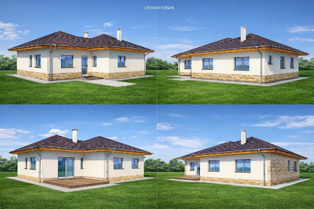 Bruttó 56 nm-es alapterület, egyszintes, 1 + 1 félszobás, fürdőszoba, konyhás ház nagy ablakokkal, világos helyiségekkel.