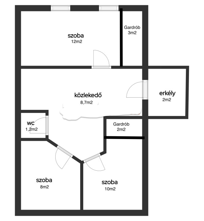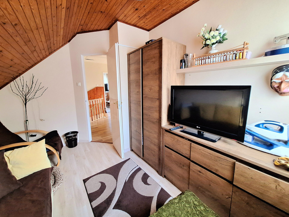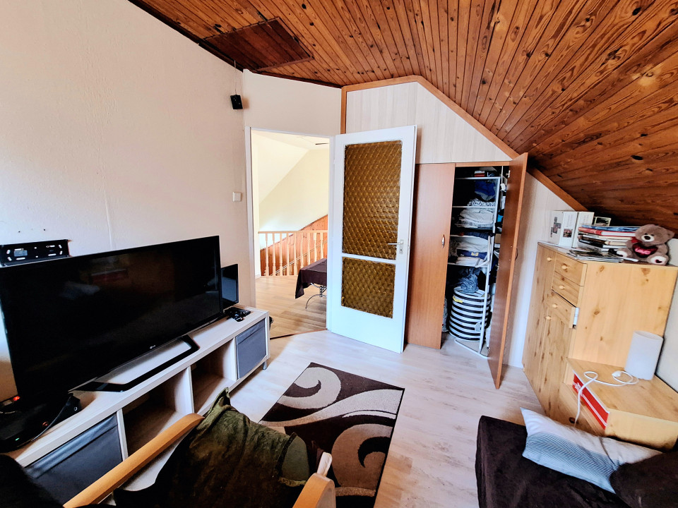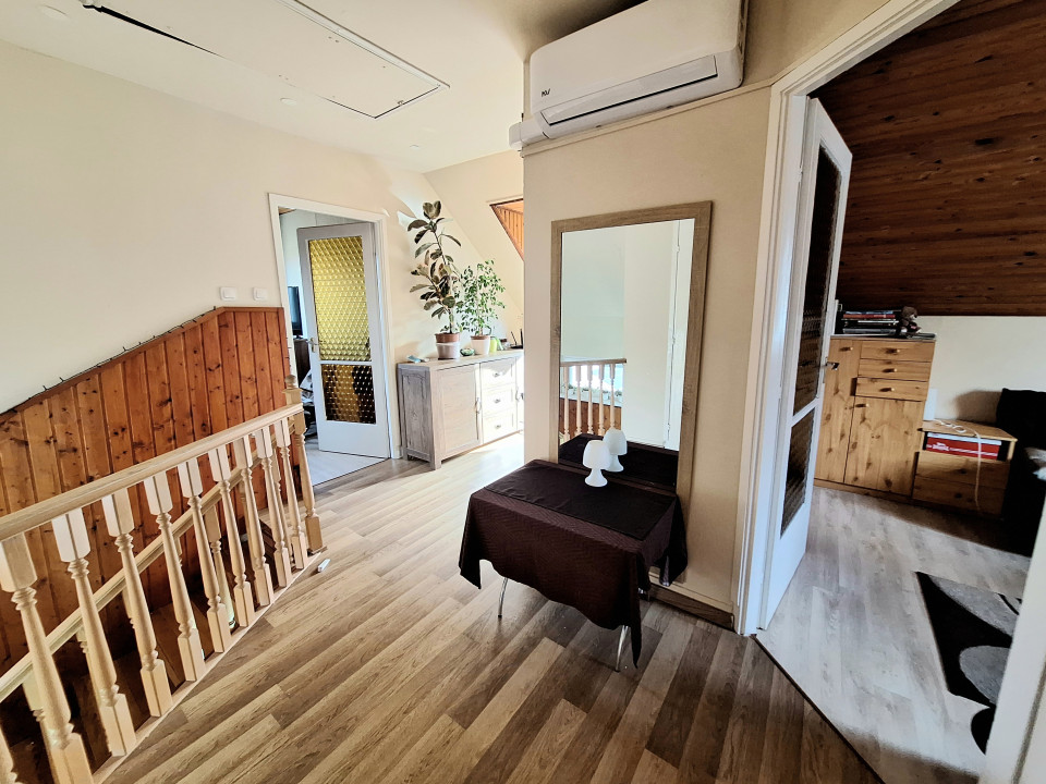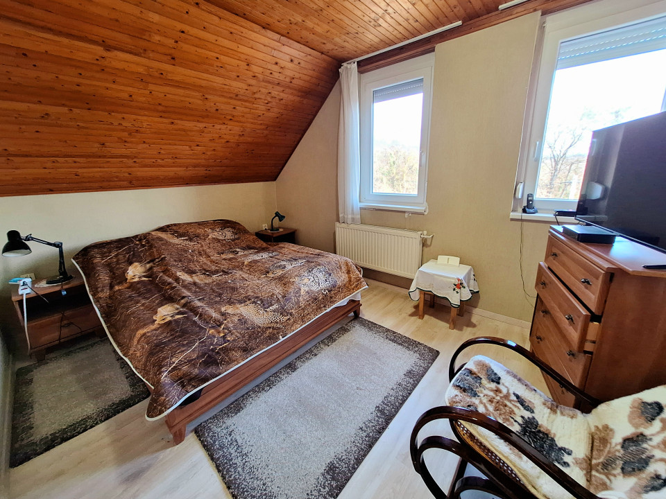 Emelet: 3 szoba ebből kettő gardróbbal (12m2, 8m2, 10m2), , közeledő (8,7m2), WC (1,2m2)