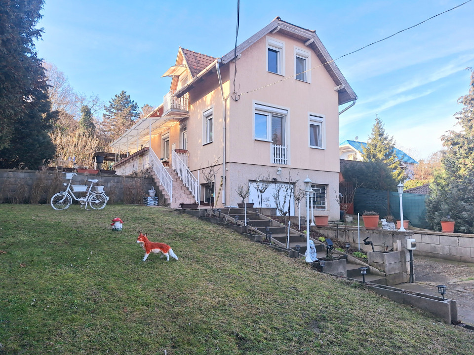Érd Parkváros zöldövezeti részén, forgalomtól mentes utcában 793m2 nagy méretű, gondozott telken, 3 szoba+ nappalis, 85m2 lakóterületű + 47m2 garázs szint+ 27m2 terasz, szerkezetileg stabil, jó állapotú, világos, karbantartott családi ház eladó.