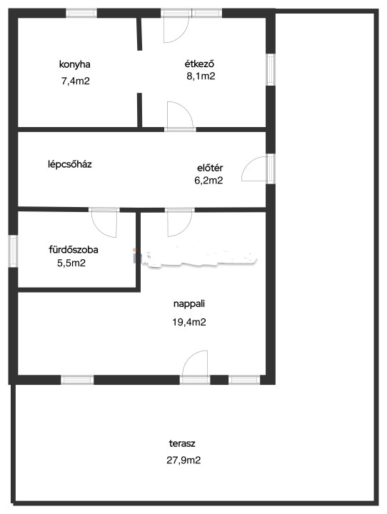 Földszint: előtér (6,2m2), konyha-étkező (15,5m2) ERDEI KILÁTÁSSAL, nappali ( 19,4m2) dél-nyugati tájolású teraszkapcsolattal ( 27m2), fürdőszoba (5,5m2)